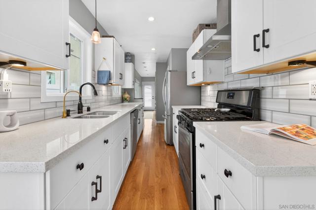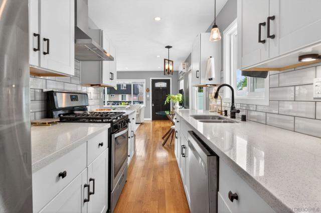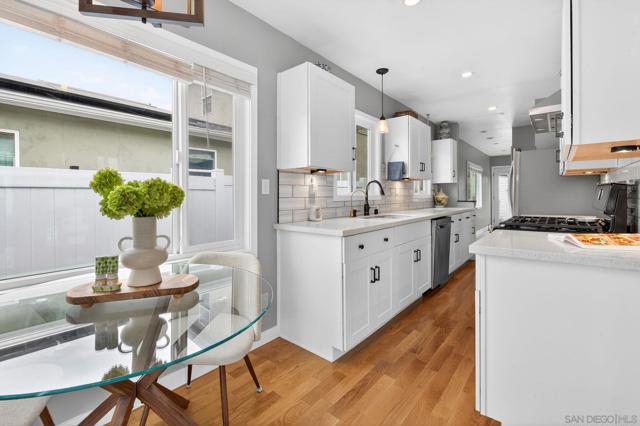 Charming, light-filled Normal Heights craftsmen where modern updates seamlessly blend with classic character and relaxed, comfortable living. This warm, airy 2BR/2BA home includes 800 sq feet of main living space PLUS a flexible detached 150 sq foot bonus room/office ideal for work, guests, hobbies, or potential ADU/studio conversion with private alley access. Meticulously maintained and fully turnkey, it features dual-pane windows, updated flooring, recessed lighting, and a fresh contemporary kitchen. Exterior enhancements include foundation improvements, improved crawl-space ventilation, and updated gutters paired with a rain barrel. Fully owned solar is grandfathered under NEM 2.0; seller reports $0 electricity charges beyond taxes. The spacious primary suite offers double closets and an upgraded en-suite bath for comfort and privacy. Outdoor living shines with a fully fenced yard, mature shade trees, real-grass landscaping, and both front and back decks for dining and entertaining. A covered, gated carport plus an additional alley space provide two dedicated parking spots, an exceptional advantage in this neighborhood. Ideally located just two blocks from Adams Ave with popular restaurants, cafés, boutiques, and everyday essentials nearby. It also offers quick access to both the 805 and 15, making it effortless to navigate the city. Don’t miss this rare opportunity to own a move-in-ready home with character and flexibility in the heart of Normal Heights!