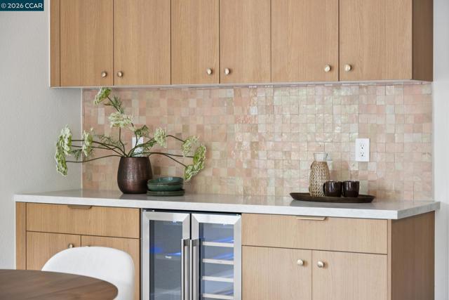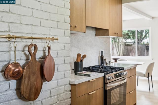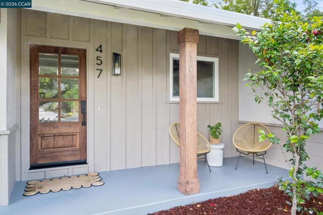 Nestled at the end of a quiet cul-de-sac beneath mature trees, this thoughtfully reimagined home by Maverick Design blends original charm with a complete transformation. Set on nearly half an acre, this 3-bedroom, 2-bath ranch style offers privacy, space, & curated design throughout. A long drive framed by fresh sod leads to the covered porch and statement wood front door. Inside, natural light highlights all-new flooring, windows, & designer finishes, balanced by character details like exposed brick. The kitchen is a standout with Taj Mahal quartz countertops, Scandinavian oak cabinetry, & new stainless-steel appliances. The kitchen opens to an oversized dining area with a built-in bar and wine fridge. The living room overlooks the expansive backyard, creating an easy indoor-outdoor flow. Two well-sized bedrooms share an updated hall bath, while the primary suite features a walk-in closet & a beautifully finished en-suite. For those warm East Bay summers, there’s a new HVAC to add comfort & efficiency. The large pie-shaped lot offers space to entertain, expand, or unwind. Located near Pleasant Hill BART, downtown Pleasant Hill, Walnut Creek, & Concord, 457 Nora Court offers a rare blend of privacy, design, & convenience.