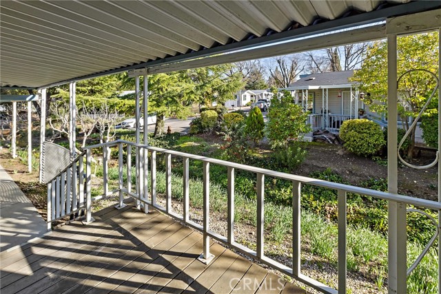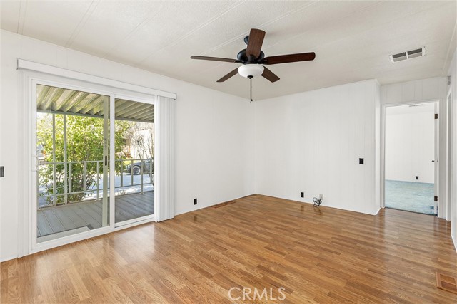 Welcome to 46 Via Santa Barbara, a 2-bedroom, 2-bath, 1526 sq ft home on owned land in Rancho Paso Estates. In addition to a two-car garage, the only garage you’ll find on this side of the park, you’ll pay no space rent, and its permanently attached to the foundation. This lovely home has been rigorously maintained! The long, covered front porch leads to a spacious living room and dining area with vaulted ceilings. Plentiful windows offer views of the rose garden, apple trees, and a seasonal creek. The kitchen has an updated cook top, double ovens and an inviting peninsula. The open and airy space opens to another living and dining area with a slider to the front porch. The spacious primary suite has two closets and the en-suite bathroom includes double sinks, a soaking tub and separate shower. The second bedroom is generous and shares a Jack and Jill bathroom with the laundry room. In addition to room for a washer and dryer, there is office space, a skylight, hookups for a 2nd refrigerator, and ample cabinetry for organizing. From here, access the expansive bonus room, lined with cabinetry and lots of windows. Entry doors with integrated blinds provide easy, private access in and out the east and west end. This flexible space can be whatever you desire! The home was tented and re-leveled, the roof has been replaced, and a new HVAC installed, a new tankless water heater was added. The automatic garage door opener was replaced and new aluminum roof and gutters installed. The two-car garage is the only garage you’ll find in this section of the park, there are built in workbenches and shelving plus a covered breezeway connects to the front and east entrance to the bonus room. Now is your chance to own a turn key home with comfort, convenience and the many amenities of this vibrant, 55+ community! Rancho Paso offers a pool, spa, clubhouses, parks and lots of social activities while being just minutes from shopping, dining and wine country.