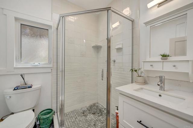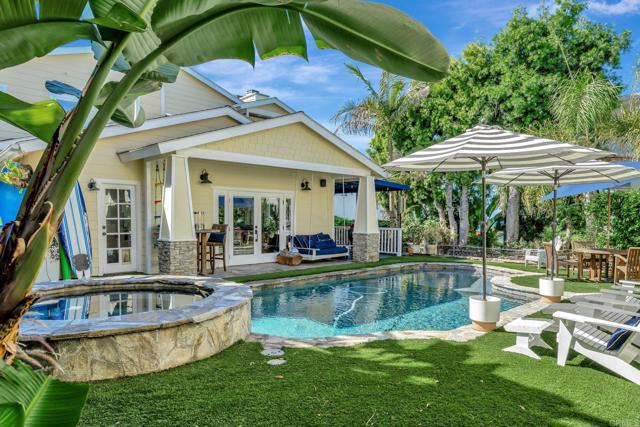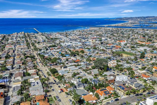 Experience coastal luxury perched overlooking the Pacific Ocean from your two beautifully designed homes. The front home features approximately 2,358 sq. ft., boasting four bedrooms and three bathrooms with a flexible floor plan ideal for multi-generational living or work-from-home flexibility. Upstairs, the expansive primary suite offers serenity and refined comfort, complete with a soaking tub, steam shower, dual sinks, abundant bespoke storage abounds, two primary closets, a dedicated shoe closet, and more storage cabinetry. A bonus office/bedroom sits nearby, creating the perfect retreat for relaxation or productivity or use it as a bedroom. All with ocean views! The main level highlights two bedrooms and two baths, a cozy formal living room, a spacious great room, and a recently remodeled chef’s kitchen equipped with a GE Profile column refrigerator and freezer, Viking range and hood, marble countertops, double-drawer Fisher & Paykel dishwasher, and 25-lb. ice maker. There's even a trash compactor. Meticulous craftsmanship is evident throughout — from the true inset cabinetry and hidden drawers to the thoughtful appliance garages and designer finishes. Luxury continues outdoors with a saltwater pool and spa surrounded by new turf and 2024 drainage upgrades. A dry bar with dual beverage refrigerators in the great room and a full laundry room open directly to this resort-style space. Three gas fireplaces—including one at the foot of the primary bed—add warmth and ambiance throughout the home. The front home is powered by 40 solar panels (PPA approx. $0.20/kWh, transferrable) is served by private parking in a two-car garage, plus an additional one-car garage. Completely separate and private from the front house is a rental over the garage. At the rear of the property, on the alley, is a separate two-bedroom, one-bath second home (approx. 899 sq. ft.) above a three-car garage, currently leased for $4,395/month. This second home features a newly remodeled bathroom (2025) and refreshed kitchen (2024) with new counters, sink and more. Updated garages include brand-new epoxy floors, slat walls, stainless sinks, and custom storage, with an EV charger serving the main residence. Additional highlights include a movie/playroom beneath the main home, ideal for guests or family entertainment, and an ocean-view deck above the front garage showcasing stunning sunsets. Recent upgrades include a 2025 water heater with recirculating system, as well as a whole-home water softener and filtration system. This is a smart home with wifi controls of lighting, the pool, heating, video, door locks, appliances and more! Some sprinklers out front on a drip system, but low water usage with turf and low water usage plants. This exceptional dual-home property combines craftsmanship, design, and effortless coastal living — a rare opportunity in Ocean Beach.