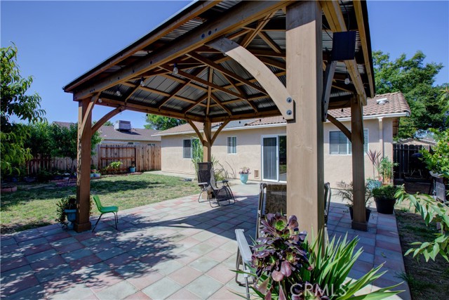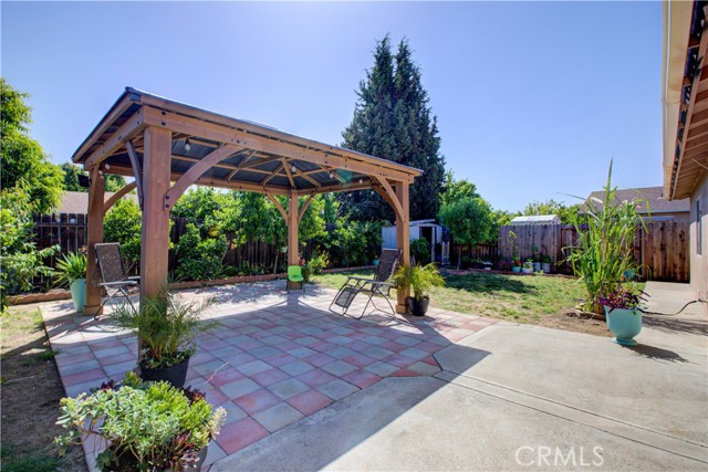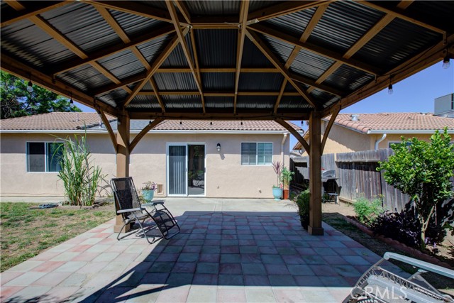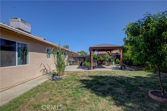 Welcome to this charming and beautifully maintained single story home offering comfort, functionality, and inviting indoor-outdoor living. Situated on a spacious lot, this property features fruit trees and mature trees with a great curb appeal. Step inside to a cozy interior showcasing a recently remodeled kitchen with sleek quartz countertops, stylish backsplash, newer stove, and microwave-perfect for everyday living. Recent upgrades throughout the home include fresh interior and exterior paint, laminated flooring, dual-pane windows, and ceiling fans for added comfort. Additional improvements include partial roof replacement, right side fence replacement, and a newer garage motor, providing peace of mind for the next homeowner. The backyard is truly a standout, featuring mature fruit trees and a beautifully constructed gazebo-ideal for relaxing evenings, family gatherings, or entertaining guests. This home shows pride of ownership and is move-in ready. A perfect opportunity for first-time buyers or anyone looking for a well-cared-for home with great outdoor space. Don't miss your chance-schedule your showing today!