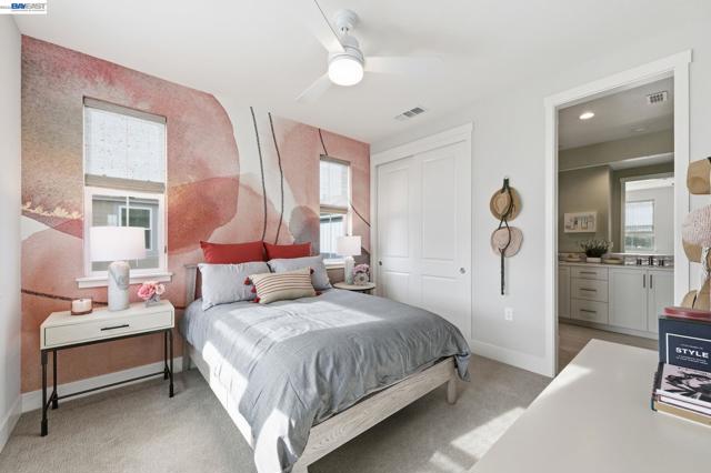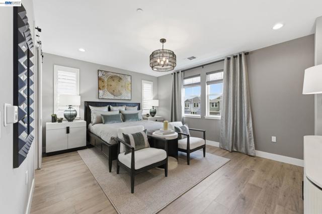 Welcome to Homesite 73 at Verdello, a thoughtfully designed three-story residence offering approximately 2,340 sq. ft. of well-appointed living space. This move-in-ready home showcases carefully selected builder options throughout, along with beautifully upgraded cabinetry, countertops, backsplash, and flooring that create a refined, modern aesthetic. Additional highlights include a convenient side-by-side two-car garage, an installed solar energy system with flexible lease or purchase options, and a highly desirable northwest-facing orientation in a premium end location. The first floor features a private bedroom with a full bath and a walk-in closet. On the second floor, an open-concept layout connects the kitchen, dining area, and family room. The kitchen is centered around a generous island and pantry, with thoughtfully designed areas, while a conveniently located powder room and linen closet add to the functionality of this level. The third floor is dedicated to the primary suite, which includes a spacious walk-in closet and a well-appointed bathroom with dual sinks and a seated shower. Two additional secondary bedrooms and a shared full bathroom complete this level. Residents of Verdello enjoy access to exceptional community amenities, including a private clubhouse with a chef’s kitchen, comfortable lounge areas, and indoor and outdoor gathering spaces. Picnic areas with BBQs and a resort-style pool provide ideal settings for relaxation and socializing, while nearby parks and walking trails enhance everyday outdoor enjoyment. Representative photos added.