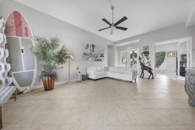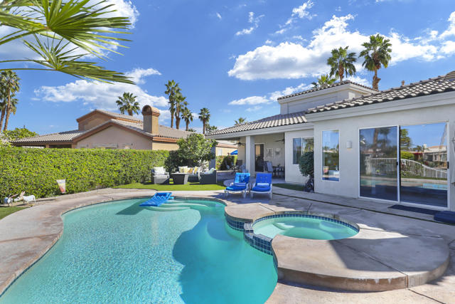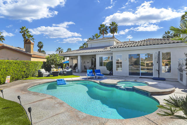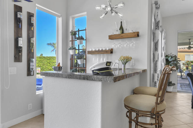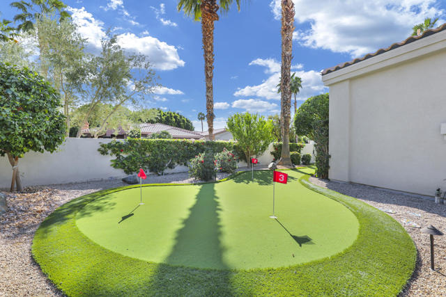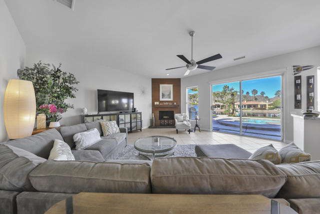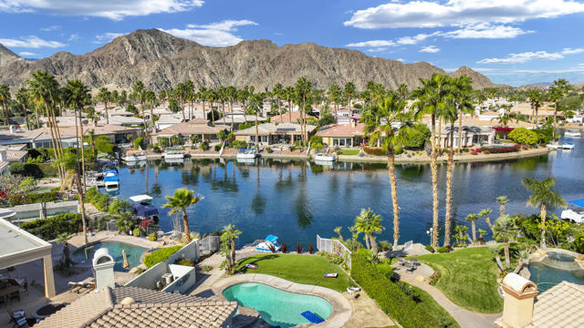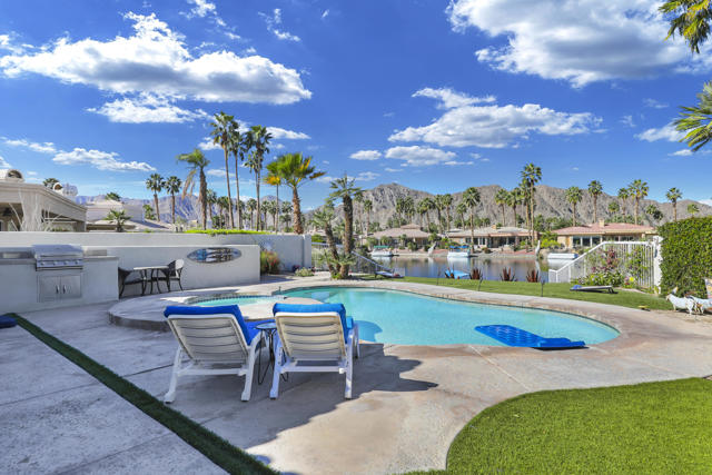 THIS IS IT!! WATERFRONT BEAUTY.... Captivating Panoramic Mountain & Spectacular Lake Views Abound! Courtyard Features a Classic 4 Hole Putting green...as well as Artificial Turf throughout the Backyard. Once you Enter the Double Glass Doors in your Foyer...You'll realize This is Home! Nicely updated and upgraded. Boasting: 3 Bedrooms, Plus a Private Office (possible 4th), and 3 Baths. Tile Flooring Displayed on a Diagonal, Gourmet Kitchen has Granite Counter Tops, Kitchen-Aid Stainless Steal Appliances set off with a Decorative Back Splash adding a Taste of Elegance! An Entertainer's Delight with 2 sit down Bars completely open to the Family Room with Walls of Glass Overlooking the Lake, Swimming Pool & Spa with Built-in BBQ Area. And Private Boat Dock! Over Sized Yard with Plenty of Room for Parties and Special Events. Baths have Updated Quartz Counter Tops and Glass inlaid in the Tile. Property Offered Furnished ! (with seller exemptions). Includes Paddle Boats! Room to add-on ADU/Pool House as well/upon approval. This 25 Acre Gated Lake Community has a Park Pavilion with Bocce Ball, Tennis/Pickle Ball Court, Dog Area, Heated Pool for Exercise Classes and a View you will Love Forever at Our Neighborhood Events! Boating and Kayaking are an Ultimate Favorite! Live The Lifestyle....Imagine...Dream....Believe...You are Here!