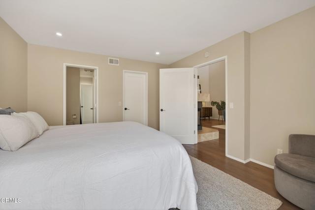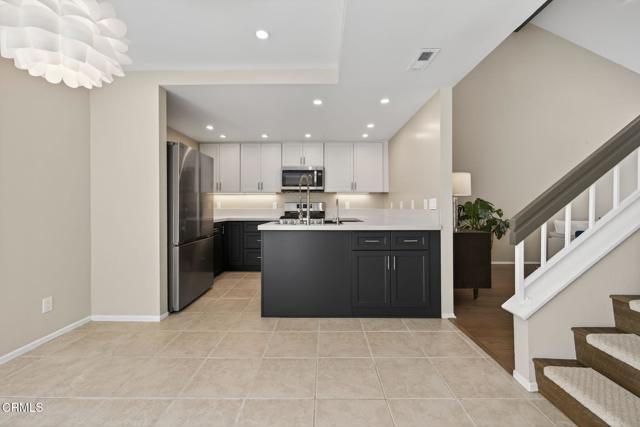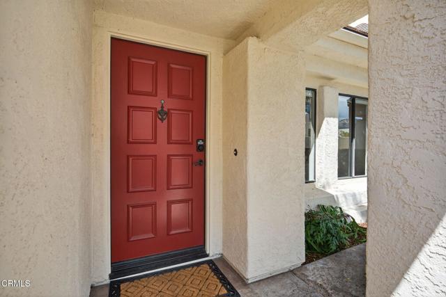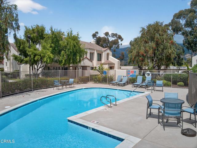 Beach Walk townhomes are set across beautifully landscaped grounds just one block from downtown and a short stroll to Carpinteria State Beach, offering an exceptional blend of coastal charm and everyday convenience.This highly sought-after community showcases Spanish-style architecture and relaxed coastal living just steps from the heart of Old Town Carpinteria. This open, light-filled 3-bedroom, 2-bath, two-story residence features a largest floor plan in the complex, thoughtfully designed for both comfort and functionality.The home has been tastefully updated with fresh paint, new flooring, modern lighting, and an improved kitchen, creating a clean and inviting interior. Soaring cathedral ceilings with exposed dark wood beams enhance the spacious living room, complete with a cozy fireplace and plantation shutters that add warmth and character.The generously sized primary suite is conveniently located on the main level and opens to a private patio, offering a peaceful retreat. Two sun-filled patios provide ideal spaces for outdoor dining and relaxation.Additional highlights include a pantry, in-unit laundry, and a detached two-car garage. Residents enjoy access to a central pool and beautifully maintained grounds, just moments from the unit.Perfectly positioned within the community, this light-filled and updated home offers a rare opportunity to enjoy one of Carpinteria's most desirable coastal residences.
