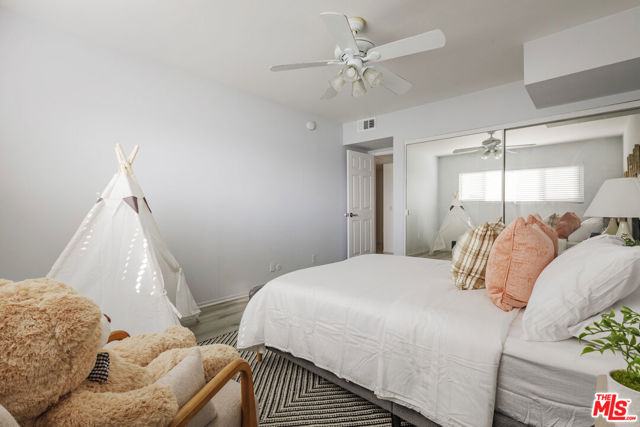TOP FLOOR! You only share one wall in this beautiful corner penthouse unit, with VIEWS OF THE HOLLYWOOD HILLS! PRIME Valley Village! This spacious 3-bed, 2-bath residence offers over 1,600 sq ft of open-concept living with abundant natural light, high living room ceilings, and great flow throughout. The mirrored living area opens to a private balcony. It flows seamlessly into kitchen and additional dining space, creating the perfect environment for entertaining or relaxing at home. The primary suite features two large closets and en-suite bath with double vanity and a tub. Two additional bedrooms provide flexibility for guests or a home office. Situated in a quiet, secure building with controlled access, covered side by side gated parking spots, and a well equipped gym, this condo combines comfort and convenience in one of the most desirable pockets of the Valley. Just minutes from Studio City, the new Sportsmen's Lodge shops, dining, and the 101/170 freeways this is Valley Village living at its best. Come make it your own!