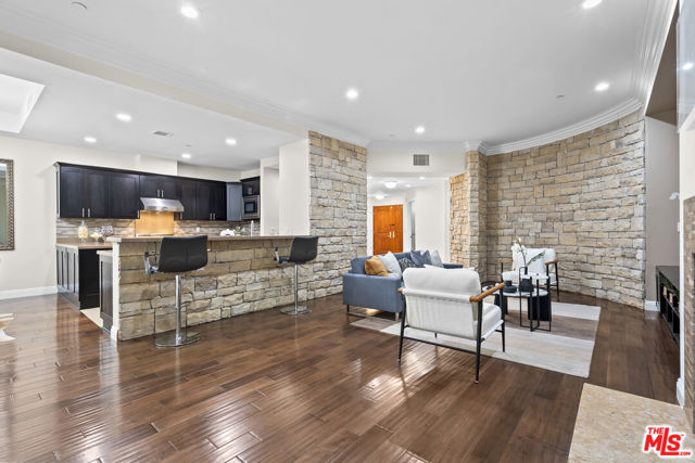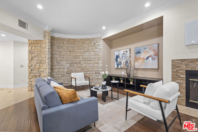 Experience the epitome of luxury living in this stunning 3 bed, 4 bath condo located in the prestigious Hancock Park neighborhood. With an expansive open floor plan and soaring ceilings, this residence offers the feel of a single-family home. The sunlit living room features a cozy fireplace and opens to one of three oversized balconies, perfect for indoor-outdoor entertaining. The gourmet kitchen is a dream come true for any chef, complete with custom cabinetry, professional-grade appliances, premium stone countertops, and a breakfast area with wet bar and wine cellar. All three bedrooms are generously sized with ample closet space, and each bathroom is elegantly designed with top-quality finishes. The serene primary suite includes a spa-like ensuite and walk-in closet. High-end hardwood and tile flooring run throughout the home, while a dedicated laundry room allows for side-by-side washer and dryer. This is the best location in the building bright, private, and beautifully maintained. Two side-by-side parking spaces and a private storage unit are included. The secure, gated community features lush landscaping, a fitness center, conference room, and outdoor area perfect for children or pets. Moments from Beverly Hills, West Hollywood, and Downtown LA. Don't miss this rare opportunity to own an elegant and move-in ready home in one of LA's most sought-after areas!