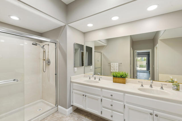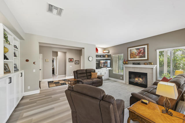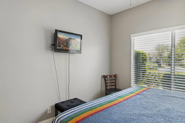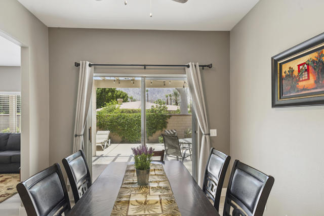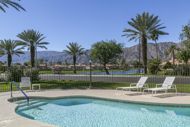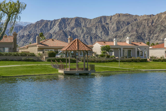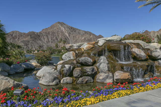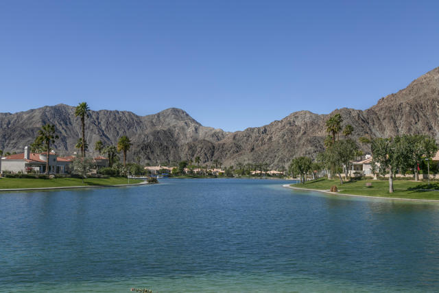 Welcome to Laguna De La Paz, a prestigious guard-gated lake community in the heart of La Quinta, offering the best of desert living. This beautifully updated 3-bedroom, 3-bath home boasts 1,980 sq. ft. of living space on a large, private pie-shaped lot. Step into a spacious great room with a cozy fireplace, adjacent to a flexible dining area or den, and an open-concept kitchen featuring modern updates and a charming breakfast nook.The primary suite is generously sized, offering space for a sitting area, a large walk-in closet, and an ensuite bath with dual vanities, a soaking tub, and a walk-in shower. On the opposite wing, you'll find a private guest ensuite and a third bedroom with an additional full bath--ideal for visitors or a home office. Both the primary bedroom and kitchen feature sliding glass doors that open to a covered patio, perfect for entertaining or enjoying serene mountain views. The backyard includes a grassy area--great for pets or outdoor fun.Community amenities are exceptional: 15 pools, 16 spas, a scenic lake with paddle and electric boats, tennis and pickleball courts, a fitness center, and more. All located near world-class golf, dining, shopping, entertainment, Old Town La Quinta, and the iconic La Quinta Resort & Spa.An ADU might be able to be added. One has been built on a simular lot. Seller and listing agent make no warranties or guarantees. Buyer to check with City of La Quinta.