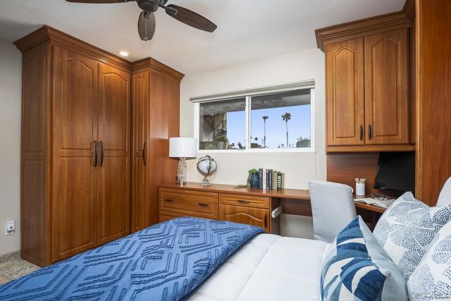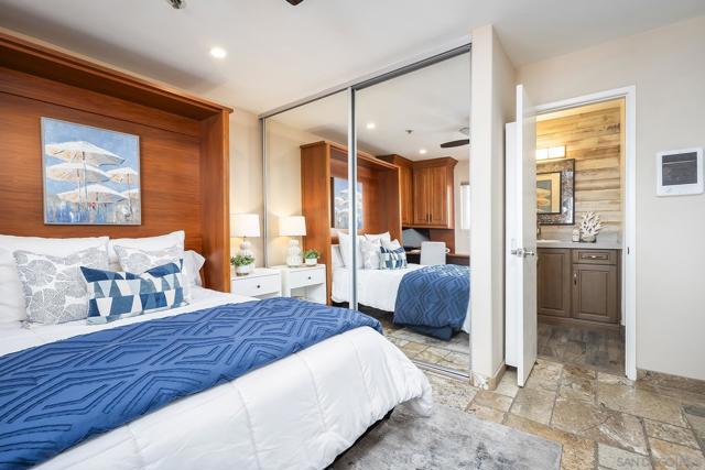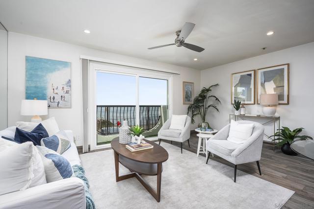 Welcome to coastal living at its finest in this beautifully maintained 2-bedroom, 2-bathroom condo offering approximately 1,078 square feet, ideally located along the waterfront in Ocean Beach. Enjoy sweeping ocean views and refreshing sea breezes from your private balconies—perfect for morning coffee or relaxing at sunset. Inside, a bright and inviting open-concept layout showcases a beautifully updated kitchen with rich wood cabinetry, stainless steel appliances, and a stylish tile backsplash. The kitchen flows seamlessly into the dining and living areas, creating an ideal space for both everyday living and entertaining. A wall of mirrors enhances natural light and amplifies the sense of space, while modern lighting, ceiling fans, and warm-toned flooring complete the cohesive, move-in-ready design. The spacious primary suite offers a tranquil retreat with generous proportions, mirrored closet doors, and direct balcony access, along with a well-appointed en-suite bathroom featuring dual vanities, ample storage, and updated finishes. The versatile second bedroom features custom built-ins, a Murphy bed, and an updated en-suite bathroom, making it ideal for guests, a home office, or both. Additional highlights include abundant storage throughout, in-unit combo washer/dryer, and a secure building for added peace of mind. Located just steps from the sand and surf, and moments from the shops, dining, and vibrant energy of Newport Avenue, this home offers the ultimate blend of comfort, convenience, and coastal charm!