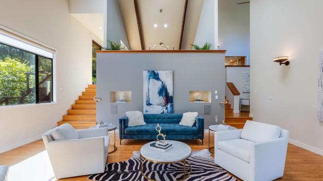 SELLER TO REVIEW OFFERS ON APRIL 1ST. Private, resort-like mid-century modern retreat on over an acre, surrounded by lush greenery and mature trees. Beautifully remodeled with ~5,106 sq.ft., soaring ceilings, and floor-to-ceiling windows capturing tranquil views from every room. Flexible layout with 4 bedrooms, 3.5 baths, guest suite, office, and expansive decks overlooking a serene natural setting. Prime location near Stanford, VC HUB, and downtown Palo Alto. Buyer to verify square footage, lot size, permits, and schools to their satisfaction.