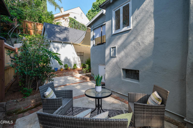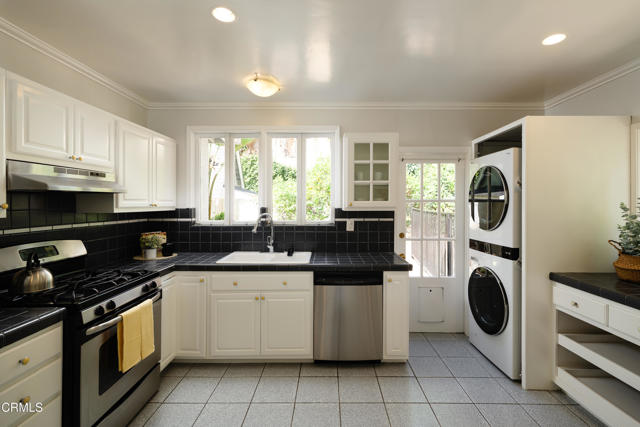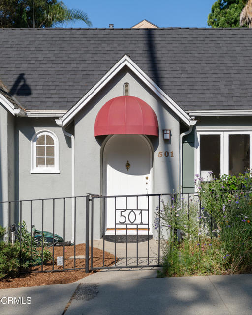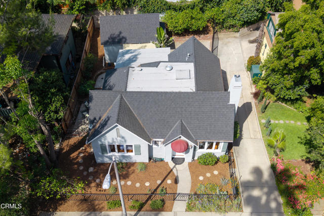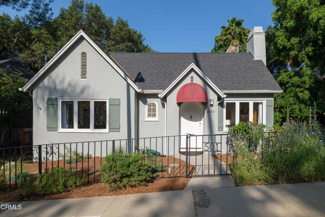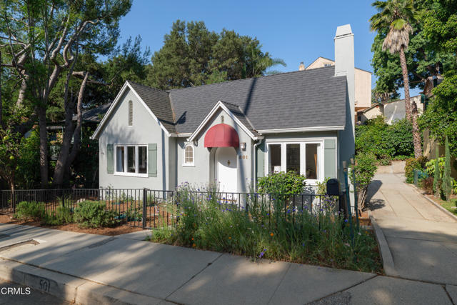 Rich in history and timeless charm, this 1923 storybook cottage offers a rare opportunity to own a meaningful piece of South Pasadena's architectural legacy. Commissioned by Lucinda H. Williams, a prominent socialite and philanthropist who shaped the legacy of the nearby Oaklawn estate, this home was originally built as the caretaker's residence and remains a treasured link to the area's storied past. Set within a thoughtfully planned early 20th-century neighborhood known for its wide, tree-lined streets and grand design, the property reflects the vision of a 'Suburb de Luxe' inspired by the renowned architects Greene and Greene. Behind a gated front yard with wrought-iron fencing, the home welcomes you through a distinctive rounded entry door into a warm and inviting living room. Original hardwood floors, crown molding, and a classic brick fireplace with mantel are complemented by charming rounded windows that echo the home's architectural character. The living room flows into a spacious kitchen area featuring tile flooring, recessed lighting, crown molding, and abundant cabinetry. Tile countertops, a gas range, stainless steel refrigerator and dishwasher, and a convenient stackable washer and dryer provide everyday functionality while maintaining the home's vintage appeal. On the left and toward the back of the home are two comfortable bedrooms separated by a full bathroom. One bedroom features carpeted flooring with nearby closet space, while the second offers crown molding, a generously sized closet, and classic casement windows. The bathroom retains its historic charm with a pedestal sink, separate tub and shower, and decorative leaded glass windows. Outdoor spaces offer both privacy and flexibility, with a gated front yard, a backyard patio, and mature citrus trees. Brick steps lead to a detached one-car garage, complete with drywall, a ceiling fan, and a built-in loft for additional storage. Central air and heating add modern comfort. Located just moments from South Pasadena's shops, dining, and local amenities, this special home blends architectural heritage, character, and everyday livability in one of the area's most beloved neighborhoods.