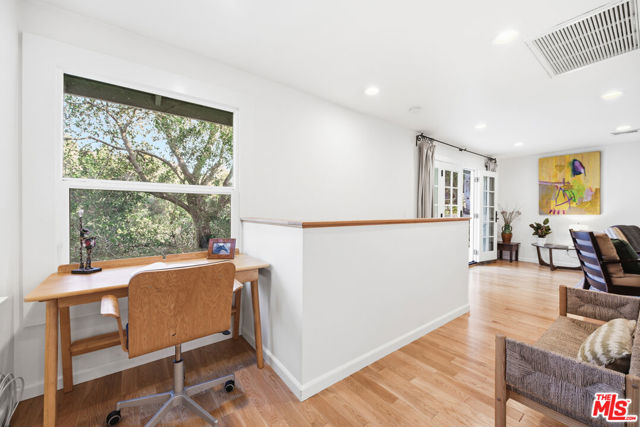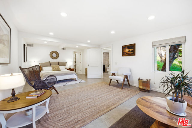 Stunning Topanga retreat fully remodeled 3 bed, 2 bath oasis blending canyon charm with modern luxury with double lot. Minutes from Mimosa Cafe, Malibu beaches, and Santa Monica, set in an unbeatable microclimate with mountain views and a seasonal creek. Sun-drenched open living/dining/kitchen flows to a porcelain-tiled wraparound deck via French doors perfect for entertaining or peaceful mornings. Chef-ready kitchen with quartz Caesarstone, stainless steel appliances, Bosch dishwasher, soft-close cabinets and thoughtful built-ins. Private downstairs primary suite with ensuite, walk-in closet and laundry. Premium finishes: oak and porcelain floors, double-pane windows, efficient Bryant heat-pump HVAC, newer roof and HW heater. Huge detached 2-car garage with EV charging, motion-lit exterior stairs, generous yard turnkey canyon living done right.