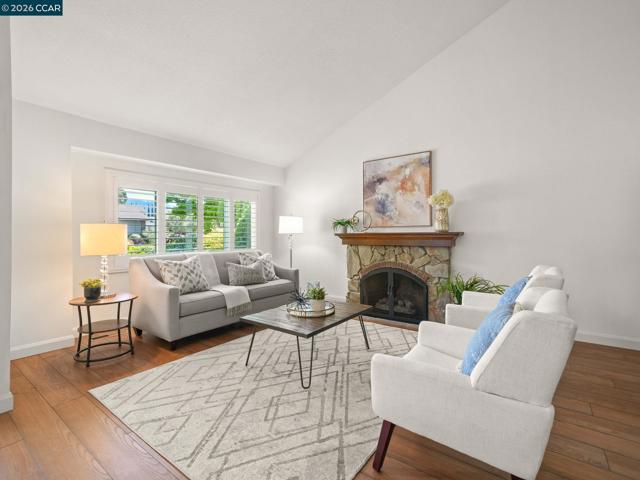 Beautifully maintained & updated single-story home in desirable Garaventa Oaks! Entry opens to the living room featuring extended plank "wood look" luxury vinyl flooring, updated gas fireplace with stone facade, brick trim & wood mantle with shutters, vaulted ceiling and adjoining formal dining area with lighted ceiling fan. Updated gorgeous kitchen with slab counters, a breakfast bar, and a full white subway tile backsplash, updated cabinets & stainless steel appliances. Large family room offers a slider to the backyard and a lighted ceiling fan. Hallway includes linen storage and inside laundry room with cabinets and storage closet. Spacious primary suite offers a walk-in closet (including a safe) and a primary bath featuring a vanity with dual sinks, large stall shower, and a sunny skylight. Pristine & serene grounds feature a stamped concrete patio, various ornamentals, roses and lawn area. Located within walking distance to wonderful Newhall Park and near the Vineyards shopping center, which offers a variety of shopping and dining options!