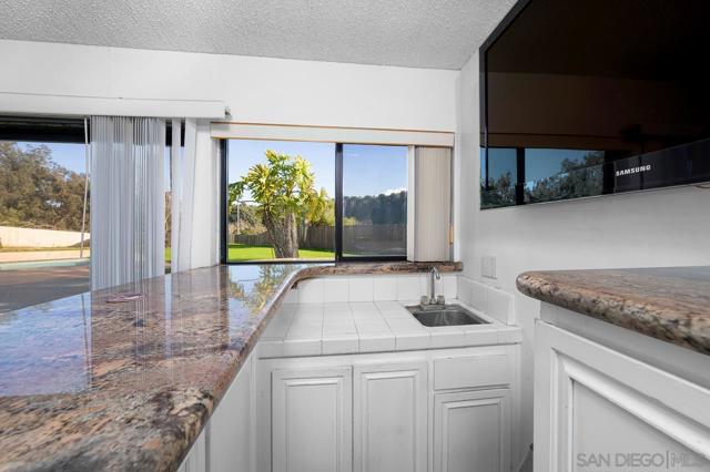 HUGE, FLAT, USABLE LOT with plenty of space to create. This two-story, three-bedroom, 2.5 bath home sits on a quiet cul de sac in desirable and centrally located University City. Stepping through the double doors and onto the tile entry, there is a step-down living with vaulted ceilings and crescent-shaped fireplace with attached dining area. Walking though the galley kitchen, there is a large family room with wet bar and two sliders to the backyard. All nicely-sized rooms have abundant natural light. The large backyard has an in-ground pool with plenty of space for entertaining...pool party, family barbecues, dining al fresco, or relaxing under San Diego's year-round sun.