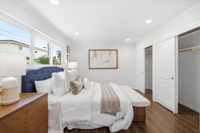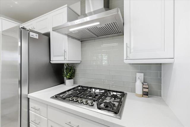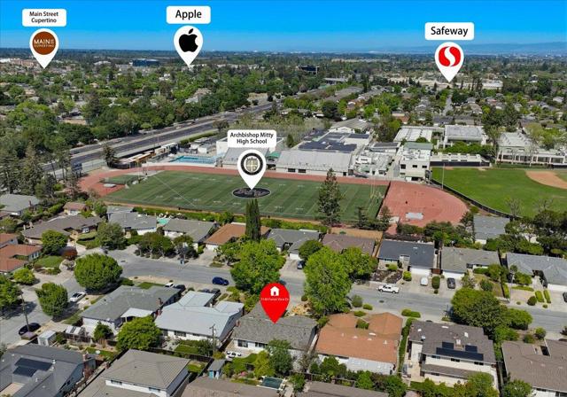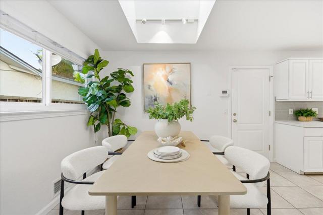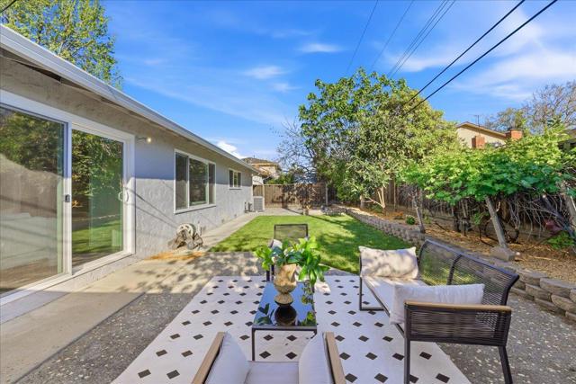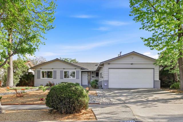 Beautifully updated single-story home minutes from top rated Cupertino schools, Santana Row & Apple Campus featuring a bright, light-filled interior & functional layout with luxury vinyl and tile flooring. Spacious living & family room with fireplace, built-in white cabinetry, recessed ceiling lighting, and large picture window. A sliding glass door provides seamless indoor-outdoor flow. Formal dining area enhanced by skylights with integrated track lighting. Bright galley-style eat-in kitchen showcases white shaker-style cabinetry, full tile backsplash, window above sink, and stainless steel appliances including refrigerator, cooktop, hood, built-in Bosch wall oven, & dishwasher. Spacious bedrooms offer built-in closets. Primary bathroom features a freestanding soaking tub, frameless glass shower enclosure with dual shower heads (rain + handheld), built-in recessed shower niches, linear drain, vanity, & consistent designer tile work. Additional highlights include a dedicated laundry area & thoughtfully designed living spaces throughout. Fenced backyard with lush lawn, concrete patio, raised planter area, & mature greenery, perfect for entertaining or relaxation. Low-maintenance landscaping & attached 2-car garage complete this move-in ready home.