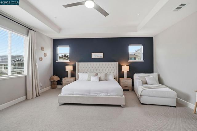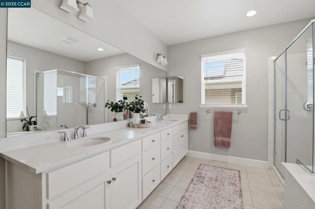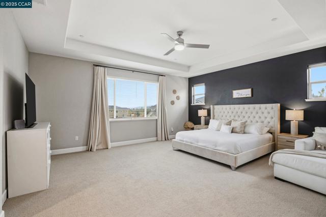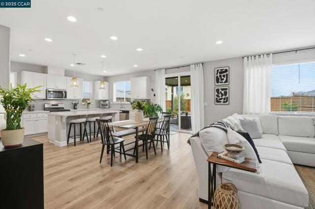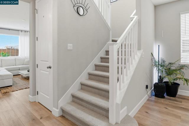 Immaculate Barton model on a premier corner lot in Enclave at Cordelia. Surrounded by rolling hills and minutes from top schools, shopping, dining, and Napa Valley, this newer home blends modern style with thoughtful upgrades. The open-concept family, dining, and kitchen area is filled with natural light and features luxury vinyl flooring, plush carpeting, quartz countertops, and a designer tile backsplash. A cozy fireplace anchors the space, with a first-floor powder room and laundry adding everyday convenience. The fully finished backyard offers a rare turnkey retreat with an adjustable-louver patio cover with solar lighting, concrete walkways, a lawn area, and mature trees perfect for entertaining or unwinding outdoors. Energy-efficient and modern features include 10 owned solar panels with bird-proofing, a tankless water heater, EV-charger-ready plumbing, a hardwired security system, and a custom automatic window screen. Upstairs, the spacious primary suite provides a peaceful escape with a walk-in closet, marble soaking tub, dual vanities, and a coordinated shower. A versatile loft and three additional bedrooms offer flexibility and privacy for the whole household. Move-in ready and beautifully upgraded, this home delivers comfort, style, and an exceptional location.