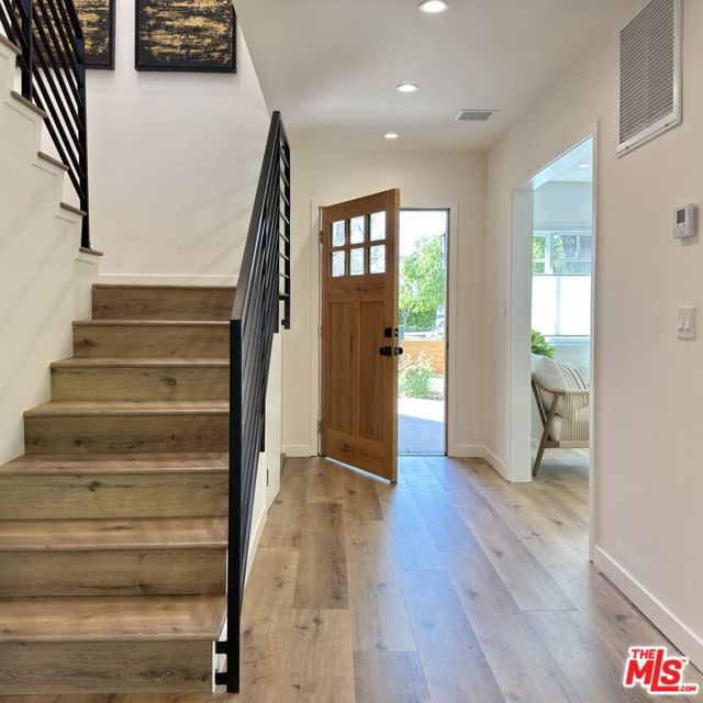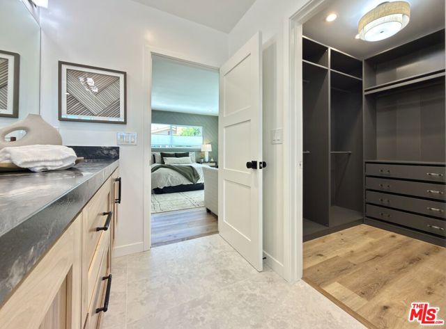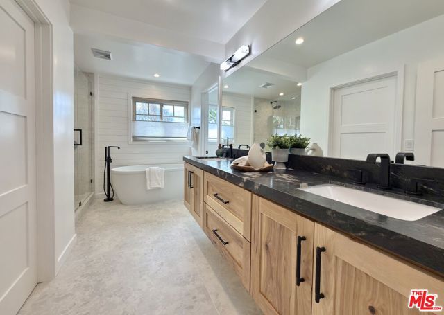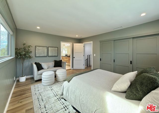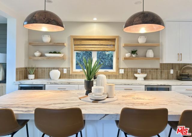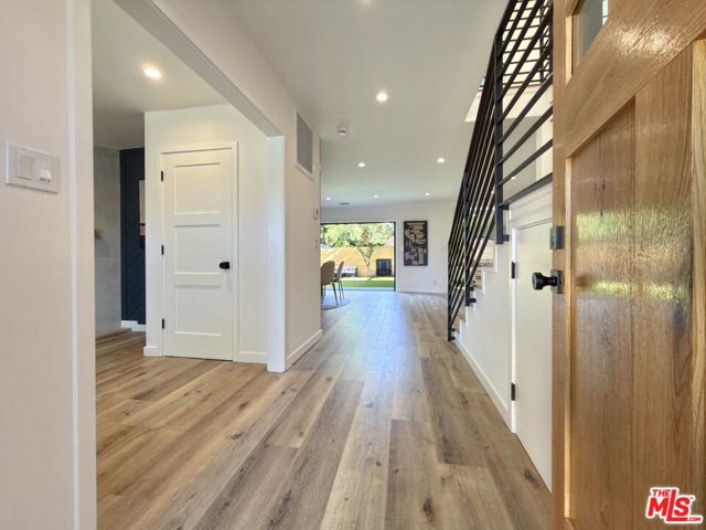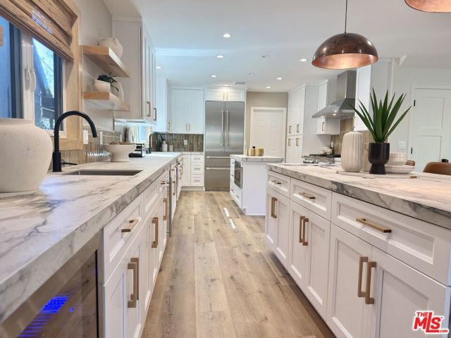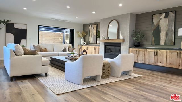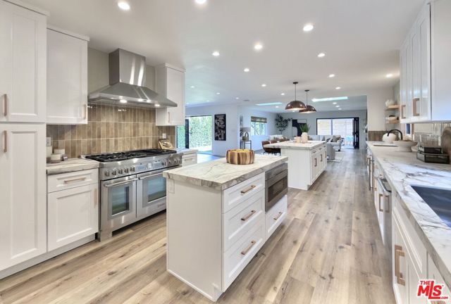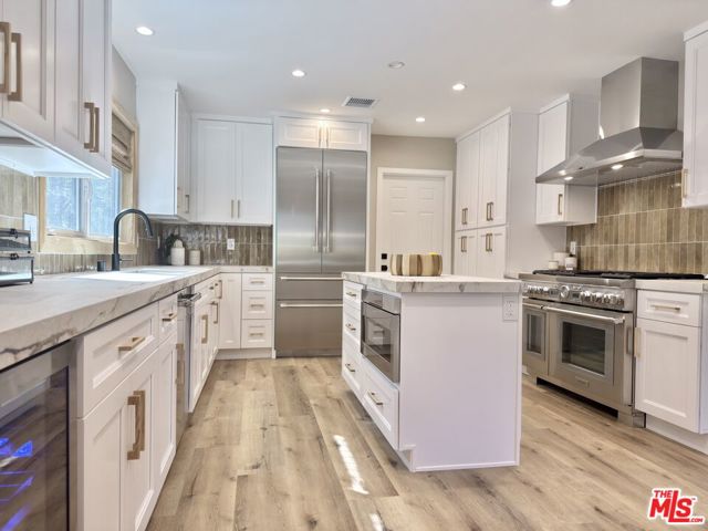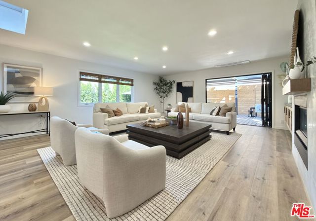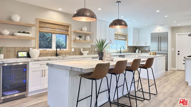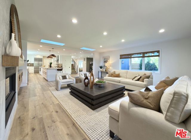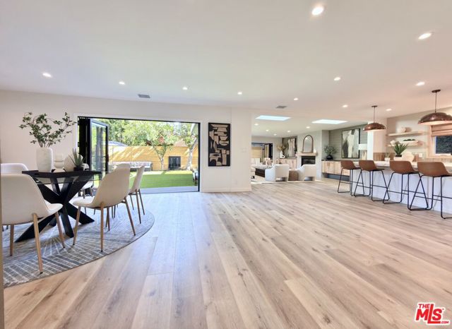 Located in the coveted Chandler Estates area of Sherman Oaks. This two story home has an exceptional floor plan. Spacious open common areas on the first floor with all four bedrooms including two suites together on the second floor. Complete renovation with a warm calming design in mind that feels casually elegant and modern. The formal entry hall has a den/office/guest space with closet and fireplace to one side and a beautifully remodeled 3/4 bath on the other. Continuing on, the floor plan opens up to a spacious dining room, kitchen, and living room that are very connected all opening to back through folding patio doors that easily blend the inside to outside when entertaining or just wanting to enjoy a beautiful California day. The kitchen is spectacular anchored by two islands and pro-level stainless steel appliances. Additional features include both wine and beverage refrigerators, built-in microwave, pantry cabinets and closet, leathered finished porcelain counters, two sinks, and hand crafted artistic copper pendant lighting. The formal dining area is spacious and can support larger tables suitable for many. There's a fireplace here too that will add elegance to any gathering. The living room features an entertainment wall offering ample storage/counter space flanking a third fireplace. Doors fold completely open to a private outdoor space protected by a louvered roof patio cover offering sun or shade as desired. Upstairs the primary suite features separate wall and walk-in closets. The bathroom has a double vanity with leather finished granite counters, double shower stall, and soaking tub. There's another smaller bedroom suite with private bath leaving the hall bath shared by adjacent bedrooms 3 and 4. The laundry closet is also located on this floor. There's an oversized two car garage that's EV ready with direct access into the kitchen. The A/C is 3-zone new and efficient. Everything is done and well thought out for the buyer who just wants to move in and do nothing. A must see home! There is a recent pool/spa approved permit. Diagram and bid viewable at the home.