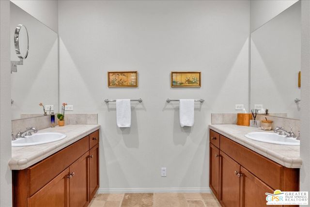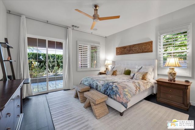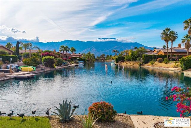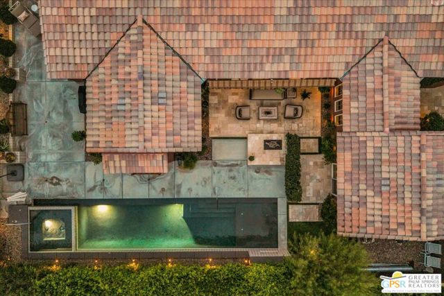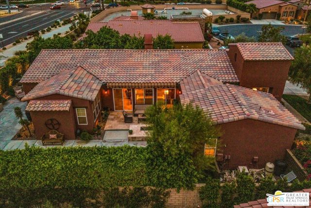 Discover this beautiful Mediterranean-style home located in the sought after lake community of Santo Tomas. Offering 3 bedrooms, 3 bathrooms, and 2,391 square feet of refined living space, this residence is designed for comfort, style, and effortless indoor outdoor living. Step inside to find an inviting floor plan enhanced by high ceilings, abundant natural light, and timeless architectural details. The kitchen, which features granite counters, an island with prep sink, and a Sub Zero refrigerator, flows seamlessly into the spacious dining area. The primary suite features a well-appointed ensuite, including an Alpha smart toilet, soaker tub, and a generous two room walk in closet. Two additional guest bedrooms, one with an en suite, provide flexibility for family, guests, or a home office. Outside, enjoy the beautifully landscaped surroundings and your very own recently updated Pebble Tec pool and spa with incorporated water feature. The multiple outdoor entertaining areas are perfect for large gatherings, or intimate evenings for two in front of the fire pit. Santo Tomas' reasonable HOA fees include gate and ground maintenance, parks, and social events. Of tremendous value is the inclusion of a Mission Hills Country Club Social, Fitness, & Racquet (tennis & pickleball) Membership. Mission Hills is known for it's thriving social environment and it's recently renovated club house and state of the art two story gym! A few of the recent updates include white oak engineered hardwood flooring in the bedrooms, newer HVAC, a Pebble-Tec pool and spa update, wifi / app controlled systems, 220 V wiring in the garage to accommodate an electric car charger, and a retractable exterior awning. Santo Tomas offers a peaceful lake environment while remaining close to world-class golf, dining, shopping, and resort amenities. It is also just a few minutes away from Downtown Palm Springs and all of its offerings. This exceptional home is a true Desert gem. Why not schedule your tour today so you may discover for yourself!