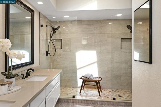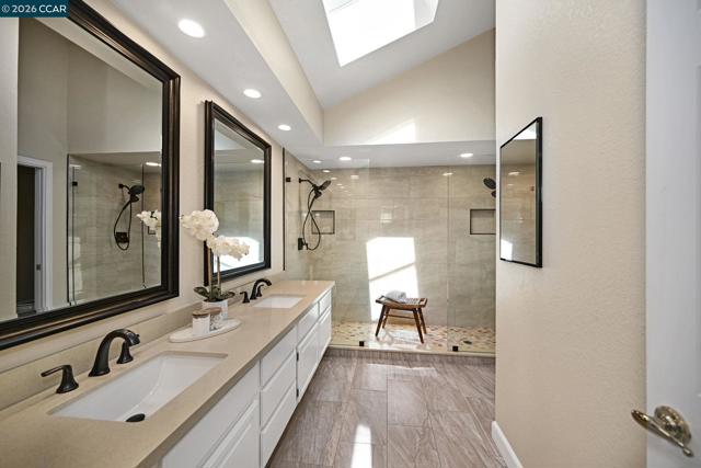 Charming north-facing single story on a quiet court at the top of popular Canyon Crest! Wonderfully updated "Manor" floorplan features hardwood floors, Plantation shutters, updated light fixtures, custom recessed lighting, an oversized 3-car garage, updated bathrooms, upgraded baseboards and a fabulous kitchen with granite slab counters, custom recessed lighting, plenty of cabinet space and newer appliances, including a 5-burner gas stove! Remodeled primary bathroom includes a stunning walk-in shower with dual shower heads, stone counters, upgraded porcelain tile flooring, new fixtures and a large skylight. Low-maintenance rear yard with pergola, aggregate patio and mature landscaping. Great location within the community, close to Bishop Ranch Business Park, San Ramon Regional Medical Center, award-winning Golden View School, hiking trails, the vibrant San Ramon City Center and easy freeway access! These floorplans don't come available very often - don't miss out!