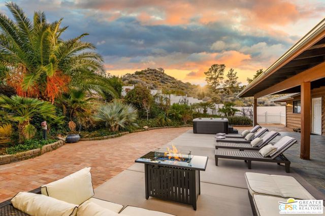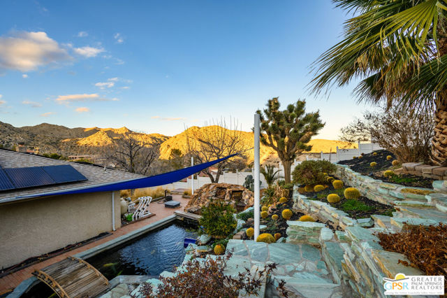 ATTENTION Buyers, The Koi pond has been evaluated and confirmed it can be converted to a pool. We have a new bid in hand. Discover Ridge Oasis, a stunning 3-bedroom, 2.5-bath fully-furnished retreat set against the hills of Yucca Valley's serene Country Club neighborhood. Perfect as a primary residence, a vacation escape, or a high-potential investment, this fully furnished home blends desert serenity with modern elegance, just minutes from Joshua Tree National Park. Inside, the open floor plan is bright and spacious, with high ceilings and clean modern finishes. The centerpiece is a gourmet kitchen, outfitted with dual islands, two sinks, and premium appliances; it's a chef's dream, perfect for family gatherings or entertaining. Enjoy morning coffee at the breakfast nook or host dinner parties in the elegant dining room, with seating for eight, complete with a cozy reading corner overlooking the expansive living area. The living room, bathed in natural light, offers breathtaking desert views through its expansive windows. Avast stone fireplace completes the space, creating a seamless connection to nature. The primary suite is a true haven, offering a sitting area, a spa-inspired ensuite with dual vanities, and walk-out doors to a serene patio - perfect for starlit evenings. Two guest bedrooms share a spacious bathroom with dual zones for privacy. A powder room and full laundry room round out the interior layout. Outside, the gated property invites exploration. Wonder paths lined with palm and Joshua trees, relax by the exotic Japanese Koi pond (which includes complete pool infrastructure for conversion), or stargaze from the upper deck's sweeping views. The hot tub and spacious entertainment patio make it easy to host and unwind. The home also comes with a three-car garage, a large custom shed, and an upgraded solar system (keeping utility costs low).Just a short drive from local dining, shopping, and hiking, Ridge Oasis offers seclusion and accessibility. Schedule your tour today to claim this desert masterpiece as your forever home!