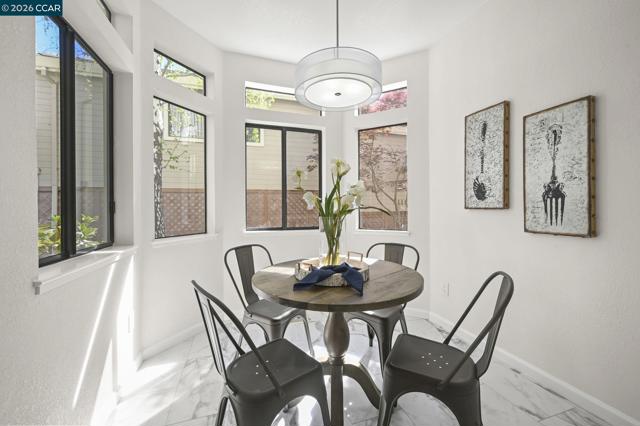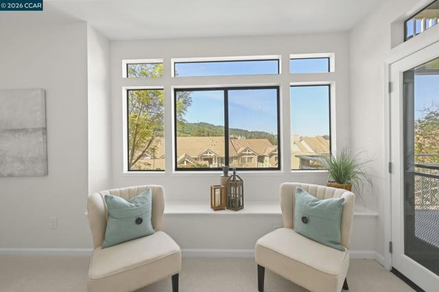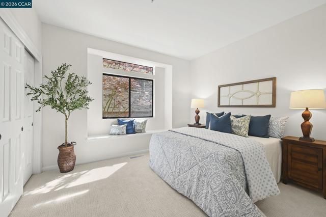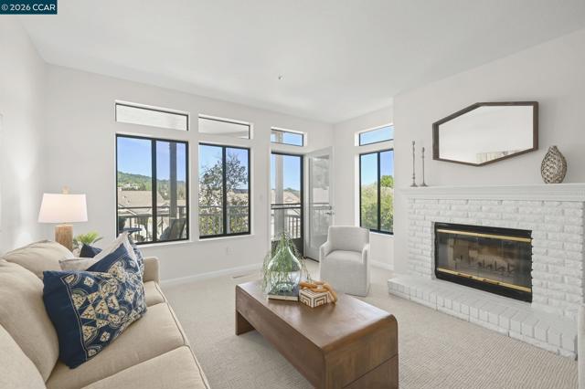 Rarely available and highly sought-after Rosslyn Model in Rossmoor Greens, one of the newer 'neighborhoods' in the community. This beautifully updated 2BD/2BA + office condo offers elegant, light-filled living in the heart of Rossmoor's premier 55+ community. The seamless floorplan features an oversized primary suite with walk-in closet, eat-in kitchen, cozy fireplace, inside laundry, and a generous balcony with stunning hillside and sunset views. Move-in ready with fresh paint, new carpet, luxury LVP flooring, updated vanities, and modern fixtures throughout — plus a detached garage and just 2 gentle steps to the front door. Beyond your front door, enjoy resort-style amenities including pools, golf, fitness center, movie theater, on-site restaurant, shuttle service, clubs, and so much more. This is the 55+ active adult lifestyle you've been waiting for!