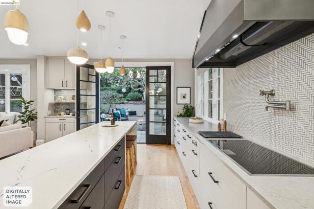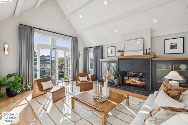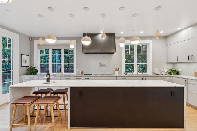 Spectacularly stylish with all the bells and whistles! Luxury is everywhere in this modern architectural masterpiece: dramatic vaulted ceilings, views of the Bay, a primary ensuite on par with a hotel includes a private balcony and spacious walk-in closet, designer lighting, solar panels, custom drapery throughout, and perhaps the most deluxe chef’s kitchen of all! Plus a desirable floorplan offers a bedroom suite on the ground level, 3 more bedrooms and 2 full bathrooms and laundry on the upper level, and a separate home office with exterior entrance on the lower level. The colossal 3-car garage has room for a home gym, extra fridge-freezer space, and loads of storage. A garden oasis right off the kitchen/den twinkles at night with a soothing stone fountain, mature maples and a magnolia, and built-in bench seating. All of this is located just minutes to College Avenue shops and restaurants, excellent schools, and outdoor recreational space!