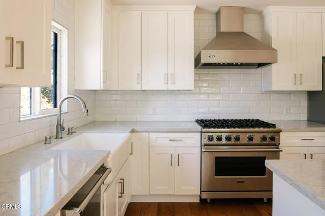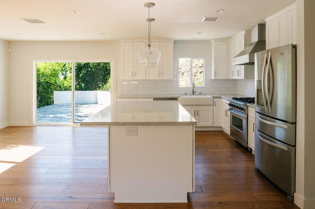 Beautifully renovated Mid-Century La Canada home on serene hillside street. 3 bedrooms, 2 bathrooms, approx 1,727 sq ft residence on an oversized 10,000+ sq ft drought resistant landscaped lot. Light and bright with an open living and kitchen floorplan with peak-a-boo views. Gorgeous Kitchen features viking range, hood, and dishwasher and stainless steel appliances. Primary suite includes walk-in closet and bath ensuite. 2 additional bedrooms are generously appointed and share a tastefully updated bath. Laundry inside closet, 2 car garage, air conditioning, and private outdoor space. Perfect blend of a midcentury home updated with modern conveniences.