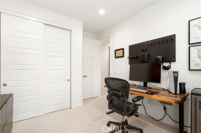 Welcome to 55 Sanctuary, a stunning tri-level home offering 3 bedrooms, 3.5 bathrooms, and approximately 1,938 square feet of thoughtfully designed living space in the newer Neo community of Mission Hills, ideally located in North Mission Viejo. Designed with today’s lifestyle in mind, the entry level features direct access to a spacious two-car attached garage along with a versatile flex room that can easily function as a home office, media room, workout space, or play area — giving you the flexibility to customize the home to your needs. The main living level presents a bright and inviting open-concept layout enhanced by high ceilings, large windows that flood the space with natural light, and modern recessed lighting. The kitchen serves as the centerpiece of the home, showcasing a large quartz island, sleek soft-close cabinetry, stainless steel appliances, and a spacious walk-in pantry. The living and dining areas flow seamlessly together and open to a private balcony — an ideal setting for morning coffee, casual dining, or unwinding at the end of the day. Upstairs, the primary suite offers a relaxing sanctuary complete with a generous walk-in closet and a spa-style bathroom featuring dual sinks and an oversized walk-in shower. Two additional bedrooms, a full bathroom, and a conveniently positioned laundry area round out the top level, providing both functionality and comfort for everyday living. This smart home includes integrated technology designed for convenience, including smart lighting, Wi-Fi mesh connectivity, climate control, smart locks, video doorbell capability, OWNED SOLAR, and a connected garage system. Additional upgrades include an EV charging outlet and an energy-efficient tankless water heater. Residents of Neo enjoy access to resort-inspired amenities including a pool and spa, fire pit seating areas, playgrounds, and BBQ gathering spaces — perfect for relaxing and entertaining. Ideally located near top-rated schools, shopping, dining, and outdoor recreation including Whiting Ranch and O’Neill Regional Park, 55 Sanctuary delivers the perfect blend of modern design, comfort, and convenience. With NO Mello Roos, this home represents outstanding value in a newer Mission Viejo community.