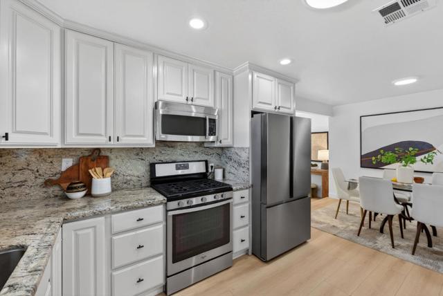 Step through a charming white picket fence into a welcoming home with a seamless, functional flow. A dedicated front yard sets the tone, while inside youll find brand-new light LVP flooring, a recently updated chefs kitchen, fresh interior and exterior paint, and updated hardware and lighting making this home truly move-in ready. Designed for both comfort and entertaining, the home offers two distinct living areas and a kitchen that opens to the dining space, creating an ideal setting for large gatherings. The well-sized bedrooms are thoughtfully positioned toward the rear of the home for added privacy, including a primary suite with a private sliding door that invites natural light and direct backyard access. The backyard is a true retreat, featuring a covered pergola, elegant stone paver patios with multiple seating areas, a spacious lawn, and dedicated garden beds for outdoor enjoyment. This residence beautifully blends classic charm with modern updates in one of the areas most established communities.