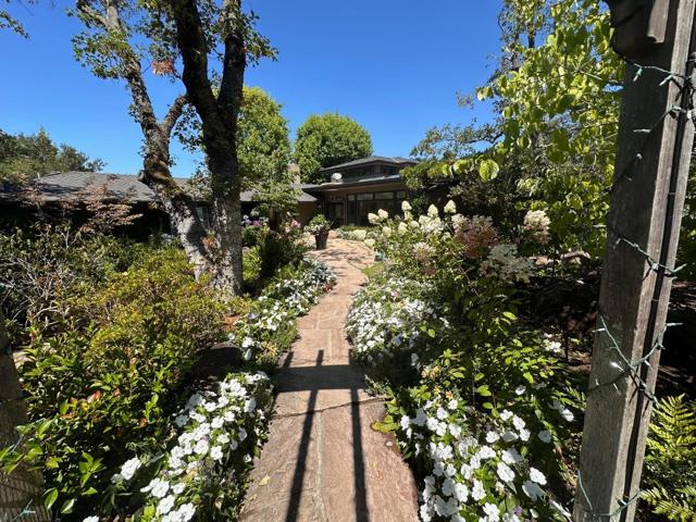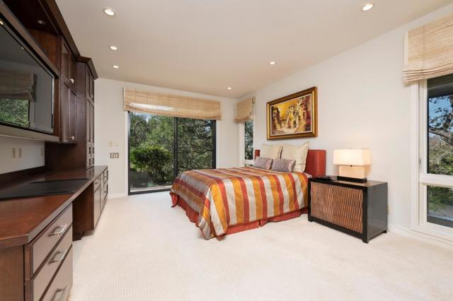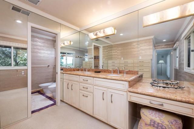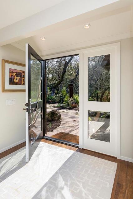 Spectacular VIEWS are the backdrop for this impeccably remodeled mid century ranch home located in prime Westridge on a quiet cul-de-sac. Nestled on 2.57 serene acres, the property features beautiful, peaceful gardens & gorgeous Oak studded knolls. Completely remodeled and meticulously maintained, with quality features & finishes throughout, this home is move-in ready! Incredible vaulted ceiling living room features built-in bar & floor to ceiling windows showcasing the views. Separate formal dining room. Gourmet kitchen with custom cabinetry, slab stone countertops and quality appliances. 3 large bedrooms and 3.5 bathrooms include 2 primary suites, one upstairs & one downstairs. All bedrooms feature walk-in closets and views. All marble bathrooms. Absolutely magnificent GARDENS include a charming, fenced courtyard entry with specimen trees & shrubs, colorful flowering annuals & perennials. The fenced rear garden showcases the VIEWS from the sparkling POOL surrounded by a patio/deck with roses, and flower beds, and features a waterfall and stream. The remainder of the property is scattered with native trees and shrubs as well-kept Oaks throughout. This is truly one of the prettiest, most serene settings in Portola Valley.