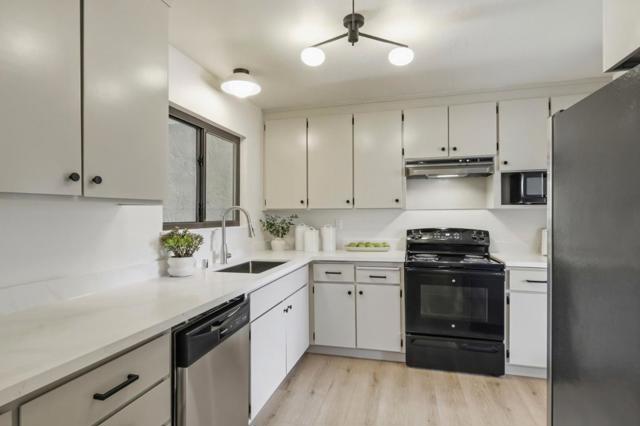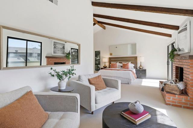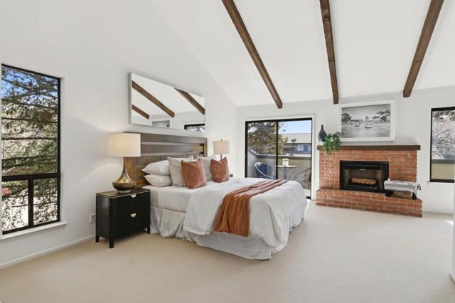 Welcome to Manet Terrace! This extremely rare end-unit feels more like a house than a townhome! This home offers private and quiet living. Step into a bright and breezy space, abutting a grove of mature Redwoods. Featuring 2 bedrooms, 2 bathrooms, and 1590 square feet of living space, this oversized unit has the same square footage as the 3 bedrooms in the complex. Soaring high-beam ceilings both upstairs and downstairs amplify the spacious feel. Dramatic stone fireplace. Kitchen with new quartz countertops, and freshly painted cabinetry. Enormous en-suite primary bedroom includes a balcony, fireplace, and extra room for an office or nursery. Walk in closet, soaking tub, and double sinks. Ground floor includes a bedroom and a full bath. Freshly painted throughout with new wide plank flooring, carpet and lighting. Ample storage, separate laundry room, A/C, and attached 2 car garage. Enjoy the private rear outdoor space. Wonderful community with pool, hot tub, clubhouse, and benefit of HOA covered maintenance. Renowned Schools! Stocklmeir Elem / Cupertino Middle / Fremont High (buyer to verify) Ideal location near the Community Center, Ortega Park, gym, restaurants, Whole Foods, Trader Joes, and major commuter routes such as 85, 280, 101 & 237, Google, Apple, and Amazon!