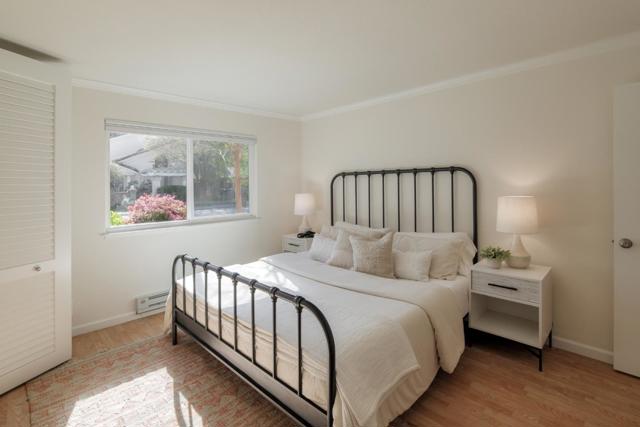 This charming ground level, end-unit home offers a bright and comfortable living experience, thoughtfully designed to maximize natural light and privacy. The main living area is anchored by a cozy fireplace and opens seamlessly to a private patio, allowing for a wonderful indoor-outdoor flow ideal for everyday living and relaxed entertaining. The kitchen is upgraded with quartz countertops, white painted cabinets and stainless steel appliances all open to the dining area. The residence includes a dual pane windows, laminate flooring throughout, in-unit full sized laundry, abundant storage, a detached one car garage plus an additional assigned parking space and is set within a quiet, well-maintained community featuring a fenced pool and mature landscaping. Ideally located near downtown Menlo Park and Palo Alto, with easy access to Caltrain, Stanford, top Silicon Valley employers such as Meta, neighborhood parks, cafés, dining, and major commute routes, this inviting home offers a balanced blend of comfort, convenience, and Silicon Valley lifestyle. Served by top rated Menlo Park schools.