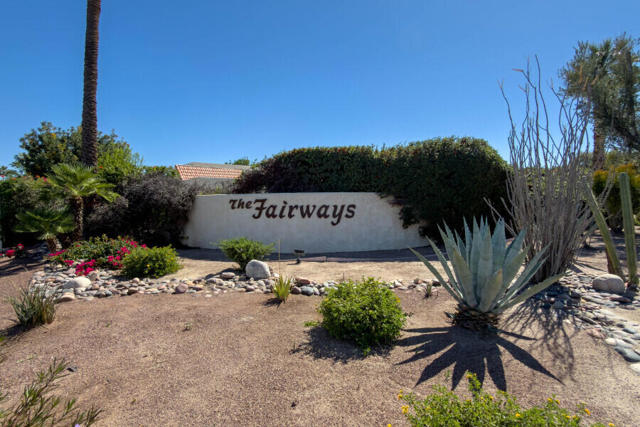 This highly sought-after 3-bedroom, 2-bath floor plan in the gated Fairways community blends classic modern architecture with thoughtful upgrades and comfortable desert living.Ideally located adjacent to the renowned Tahquitz Creek Golf Resort and directly across from the entrance to the new CV Link hiking and biking trails, the home enjoys sweeping mountain views from a generous walled west-facing terrace--perfect for outdoor relaxation and sunset entertaining.The move-in ready interior features tile flooring throughout and a spacious living area that flows into a large kitchen with center island, cherrywood cabinetry, granite countertops, and a convenient pass-through bar. The primary suite offers direct access to the outdoor patio and includes a well-appointed bath with dual vanities and a walk-in shower.Recent improvements include a new electrical panel, EV-ready outlet in the garage, a 14-SEER air conditioning unit , and a resurfaced foam roof (2024). The home also features an attached one-car garage and an additional Carport. Command One alarm system.Fairways residents enjoy resort-style amenities including eight heated pools and spas, tennis and pickleball courts, a putting green, and expansive greenbelts throughout the community. The community clubhouse features a pool table, TV lounge area, and a full kitchen available for private gatherings and events.