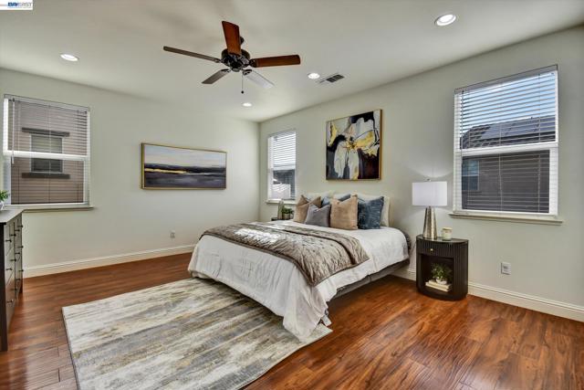 Welcome Home! This stunning contemporary home in Gilroy is in like-new condition with fresh interior paint. Natural light fills the home with 9-foot ceilings and an open floor plan. Features include recessed lighting, ceiling fans, tile and laminate flooring, quartz countertops, soft-close cabinetry, extra built-ins, whole-house water softener, double insulation, and energy-saving solar panels. The kitchen offers stainless steel appliances, gas cooktop, and walk-in pantry. Upstairs includes an oversized primary suite with dual sinks, soaking tub, walk-in closet, and excellent storage. In addition to three bedrooms, a spacious upstairs loft is optional 4Th bedroom and can easily be enclosed during escrow. Enjoy a sunny, low-maintenance backyard with large cement patio and garden beds. Community playground and bocce ball courts. Close to the 79-acre Gilroy Sports Park with soccer and baseball fields, jogging track, playground, and hiking trails. Easy Hwy 101 access to San Jose, Morgan Hill, and Monterey. Come fall in LOVE!