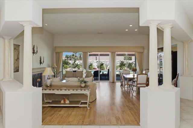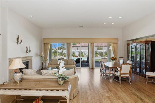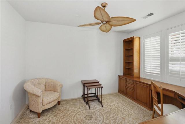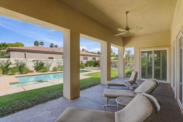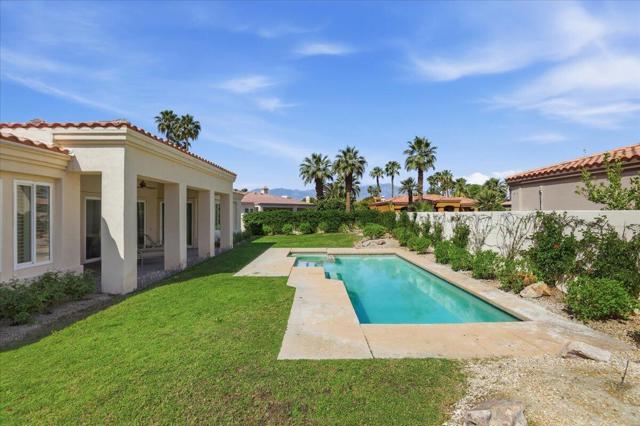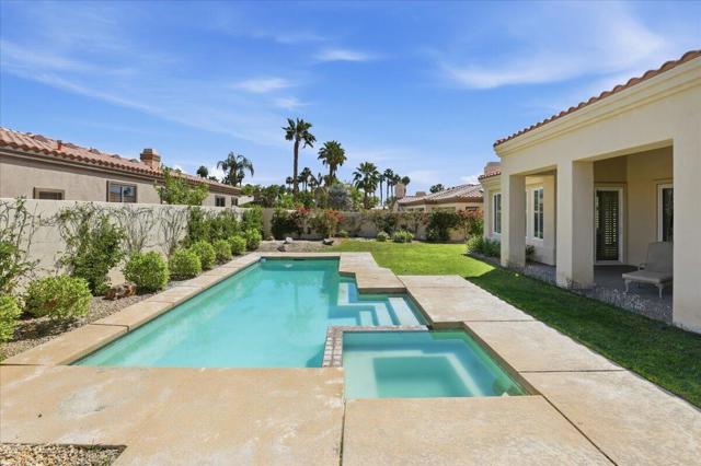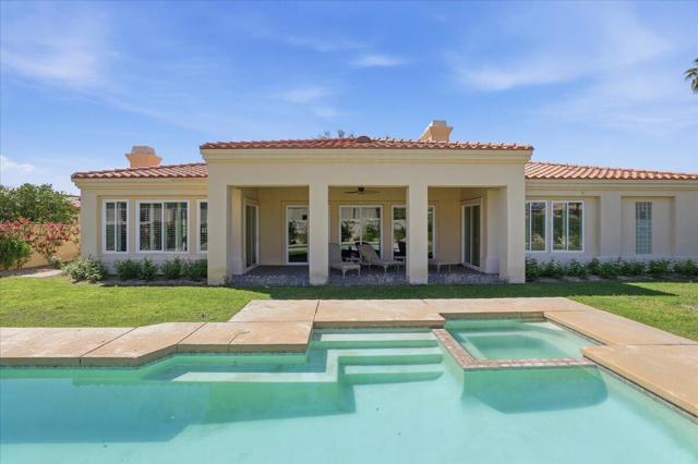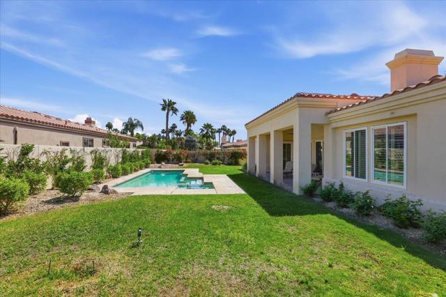 Located within the gated community of Tierra Vista in Palm Desert, this residence offers the space, privacy, and indoor-outdoor living many desert buyers are searching for. Positioned on an expansive 12,000+ sq ft corner lot, the home welcomes you with a driveway that creates an inviting sense of arrival. Inside, light-filled living spaces are designed for both everyday comfort and entertaining. The thoughtful floor plan provides excellent bedroom separation and features three bedrooms plus a dedicated office and 2.5 bathrooms. The private primary suite includes a generous walk-in closet and spacious en-suite bath. At the center of the home, the kitchen opens to the family room, creating a natural gathering space complete with granite countertops, center island, and abundant cabinetry. Additional highlights include plantation shutters and a two-car garage. Step outside and you begin to appreciate what makes desert living special. The north-facing backyard offers a private retreat with pool, spa, extended covered patio, and multiple areas to relax or entertain while enjoying peekaboo mountain views.