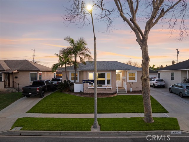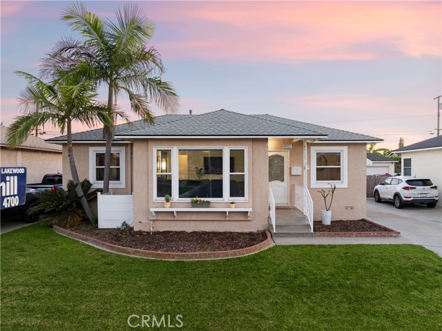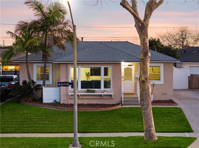 Welcome Home to 6222 Arbor Rd, a classic Lakewood bungalow that blends timeless character with a fully built-out backyard resort. Step inside to a light-filled open living space flowing seamlessly across luxury vinyl plank flooring throughout. A large picture window frames the front yard and floods the main living area with natural light, while a modern matte black ceiling fan and crisp white walls keep the feel current and airy. The layout flows easily between the living room, a separate dining area with corner windows, and the kitchen. The kitchen is anchored by granite countertops, white cabinetry, a glass mosaic tile backsplash, and a full appliance package with gas range, built-in microwave, dishwasher, and refrigerator with dedicated water line. A rear kitchen door leads directly out to the backyard entertaining zone. The bathroom was fully remodeled in March 2021 and features classic white subway tile in the tub/shower surround, a Corian Stone vanity top, updated fixtures, and a mirrored medicine cabinet. Three bedrooms are finished with grey luxury vinyl plank, ceiling fans, and ample natural light. The primary bedroom offers views out to the pool, and a bonus flex room at the rear of the home opens directly onto the covered patio and pool deck, making it ideal as a home office, guest suite, or poolside retreat. A separate in-home laundry room with gas hookup connects to the backyard through its own exterior door. Outside, the backyard is the crown of this property. A sparkling freeform pool installed in 2017 anchors the space, wrapped by a generous concrete deck, a permanent white aluminum patio cover, seating area, and a storage shed. At the rear of the lot, a fully detached two-car garage is accessed via a long shared driveway, offering significant parking. At 1,066 square feet, the home lives larger than its footprint thanks to an open layout, strong indoor-outdoor flow, and the substantial backyard entertaining space. Additional upgrades include a GAF Timberline asphalt shingle roof installed in 2020, central heating and air conditioning, an individual gas tank water heater, an automatic sprinkler system, and gated vinyl side-yard access. Located in close proximity to Lakewood shops, parks, and dining, 6222 Arbor Rd delivers classic Lakewood character, thoughtful updates, and a true turnkey pool-and-patio lifestyle on one of the neighborhood's most established streets.