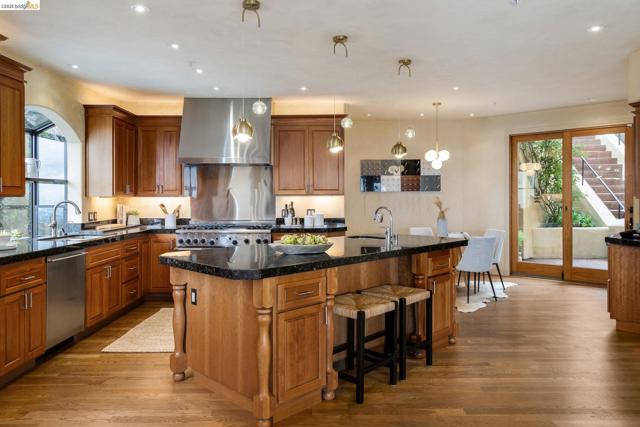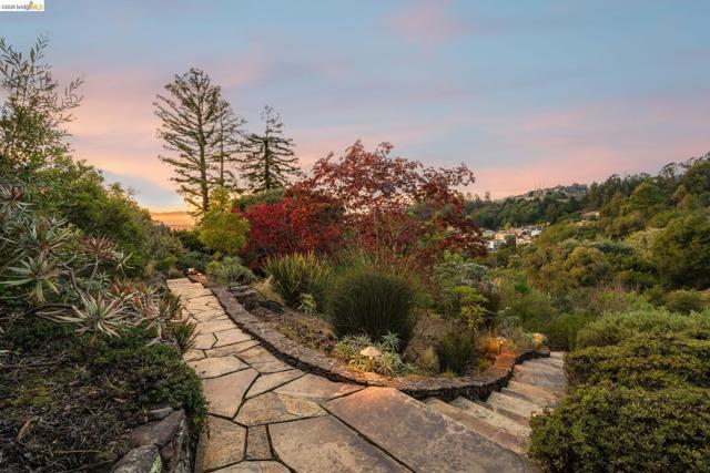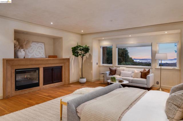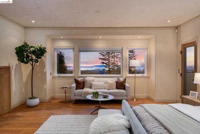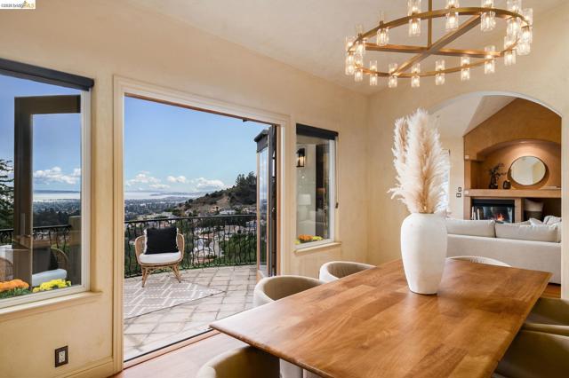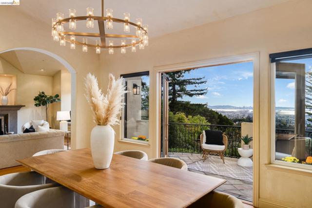 Amazing panoramic views of the San Francisco skyline, the Golden Gate Bridge, the Bay Bridge, the Richmond Bridge, and glittering bay waters define 6257 Virgo Road, a one-of-a-kind Montclair hillside estate perched on a tranquil street. More than 5,100 sq ft of refined, move-in-ready living sits on a lushly landscaped 14,544 sq ft lot, with seamless indoor-outdoor flow built for elevated everyday living and unforgettable entertaining. An expansive chef’s kitchen opens to formal living and dining rooms with soaring ceilings and walls of glass framing the views. A sunlit, dedicated office creates the ideal work-from-home sanctuary. Four spacious bedrooms and 3.5 spa-inspired baths include a showstopping primary suite with a fireplace, sitting area, and a boutique-caliber walk-in closet with custom built-ins. Downstairs, enjoy a home theater plus gym or flex space. Outside, a generous yard is enhanced by a seasonal creek and a charming handcrafted bridge, perfect for morning coffee and golden hour gatherings. Owned solar with Tesla Powerwalls, hardwood floors, and three gas fireplaces complete this exceptional offering. Minutes to Montclair Village, parks, and easy commuter routes. Views: Downtown