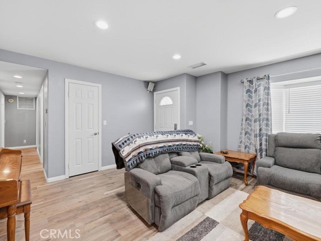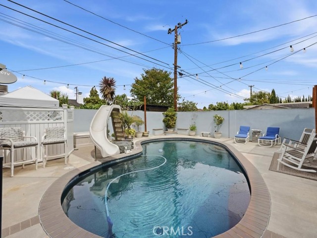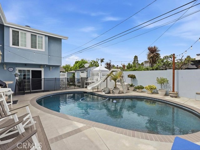 Welcome to 6261 Vanguard Avenue in the Eastgate neighborhood of West Garden Grove, this expansive and beautifully maintained pool home blends comfort, functionality, and Southern California charm. Completely rebuilt in 2003, this home now boasts of almost 3100 sqft of family living. Currently a 5 bedroom 3 bath home, it could be a 6 bedroom home (loft enclosed) or divided easily into 2 units with 3/2 on the bottom and 2/1 on the second level. Dual Pane windows throughout, new blinds T/O, dual AC units (one upstairs one down), tankless water heater, surround sound and security wiring already built in. This inviting residence features a bright and open floor plan with an abundance of natural light, recessed lighting, 2-tone custom paint that creates a warm and welcoming atmosphere throughout. The spacious living area flows seamlessly into the dining space and kitchen with plank ceramic tile flooring making throughout the 1st level make it ideal for both everyday living and entertaining. The kitchen offers upgraded cabinetry with 2 glass curios, 6 burner gas stove top, brand new electric oven, generous granite counter space, a breakfast bar and a layout designed for convenience. The stainless-steel appliances top off perfection. Downstairs features the original oversized primary with an ensuite bath attached. This bedroom has French doors that open to the pool area. The additional 2 bedrooms are good sized and have ample wardrobes. Upstairs features a loft area, wide hallway leading to a huge and awesome primary bedroom. This is truly someplace you can get away from it all! Zero clearance gas fireplace, coffered ceilings with ambient lighting, private balcony and ensuite primary bathroom to die for. Dual sinks, vanity, jetted roman soaking bathtub plus an oversized walk-in shower, private commode and linen closet and a lavishly sized walk-in closet. There is another spacious guest bedroom with large wardrobe. Step outside to your own private backyard retreat featuring a sparkling pool, firepit, BBQ, your very own slide and a separate relaxing spa—perfect for enjoying sunny California days, entertaining guests, or unwinding in total privacy. This beautiful home is large and has the potential for an ADU opportunity. Situated in a very desirable neighborhood with excellent schools, this home is close to parks, shopping, and dining, with easy access to major freeways for commuting.