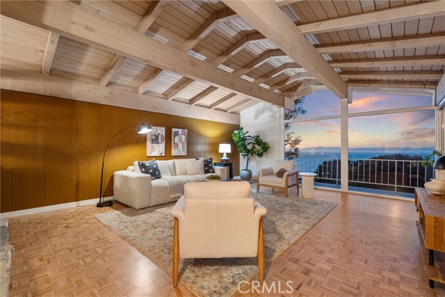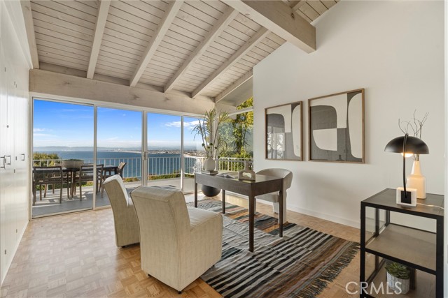 For the first time ever, this exceptional mid-century modern residence in the coveted Malaga Cove neighborhood is being offered to the market. Showcasing sweeping panoramic ocean views, the home captures the iconic Queen’s Necklace, sparkling city lights, and serene mountain vistas—an ever-changing backdrop that is nothing short of breathtaking. Inside, warmth and character abound with recently refinished parquet hardwood floors complemented by rich bamboo flooring. Expansive floor-to-ceiling windows flood the living spaces with natural light and seamlessly connect the indoors to multiple balconies, where the vast Pacific Ocean stretches endlessly before you. This is a home that invites both comfort and creativity—offering incredible potential for a visionary buyer to elevate and personalize while preserving its timeless architectural charm. Ideally located within walking distance to the charming Malaga Cove Market and the historic Malaga Cove Public Library, this property combines stunning natural beauty with everyday convenience in one of the Peninsula’s most desirable neighborhoods.