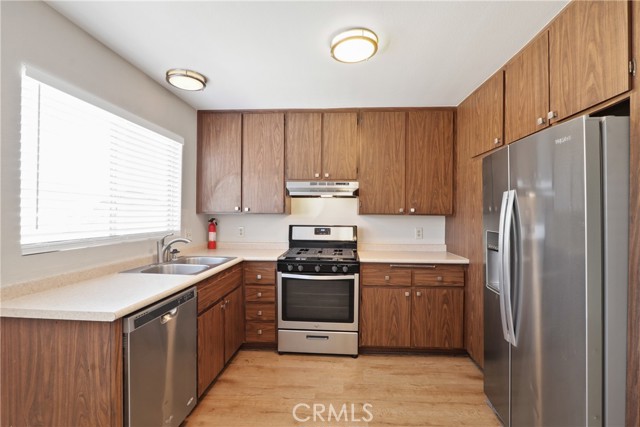 Welcome to this well-maintained, upstairs end-unit condo in the highly desirable Woodbridge community of Irvine. This spacious 2-bedroom, 1-bath home offers approximately 928 square feet of comfortable single-level living. Enjoy the privacy of a separate entrance with a private staircase leading to the second-floor front door. Inside, the spacious living room opens to a cozy balcony—perfect for relaxing or enjoying your morning coffee. The kitchen features a gas stove, stainless steel sink, stainless steel refrigerator, ample cabinet space, and a dining area for everyday meals. The bathroom features a shower/tub combo and a vanity with ample storage. The home has been freshly painted, creating a clean and inviting interior. Additional highlights include radiant heating, and a convenient in-unit side-by-side washer and dryer. Both bedrooms are generously sized, and the end-unit location provides added privacy within a quiet, well-maintained community. The unit also includes one assigned carport. Residents enjoy access to Woodbridge Village Association’s resort-style amenities, including two scenic lakes with beach lagoons, multiple pools and spas, tennis and pickleball courts, parks, tot lots, and scenic walking trails. The community is known for its peaceful setting, tree-lined streets, and exceptional lifestyle offerings. Conveniently located near top-rated Irvine Unified schools, shopping, dining, and major freeways, this home offers the perfect blend of comfort, convenience, and community living.