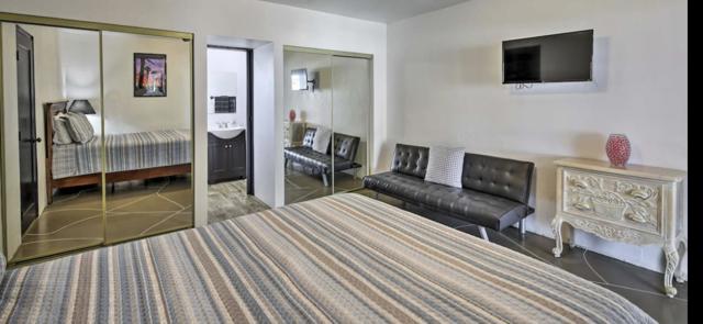 A RARE OPPORTUNITY to own a spacious Mid-Century Modern-inspired desert retreat just minutes from Palm Springs, set on an expansive 13,068 sq ft lot! UNA OPORTUNIDAD UNICA de adquirir un amplio refugio en el desierto con inspiracion Mid-Century Modern, ubicado a solo minutos de Palm Springs y situado en un amplio terreno de 13,060 pies cuadrados!!Professional photos coming soon. Stay tuned for updated images showcasing this beautiful property!! This beautifully designed 1,954 s.f. home offers 3 bedrooms and 3 bathrooms, with each bedroom featuring ample space, providing comfort, privacy, and flexibility for a variety of living arrangements.The home showcases Mid-Century Modern and Contemporary Desert design elements, including exposed beam ceilings, polished concrete flooring, and an open-concept layout that creates a seamless indoor-outdoor living experience. Large windows fill the home with natural light while offering views of the inviting backyard.The spacious kitchen features stainless steel appliances, gas range, custom tile backsplash, and abundant cabinetry, making it ideal for everyday living and entertaining.Step outside to a resort-style backyard complete with a private swimming pool, fun pool slide, expansive patio areas, and beautiful mountain views--perfect for relaxing or hosting gatherings. The gated front entrance and oversized driveway provide privacy and ample parking.With ADU potential and a layout that offers incredible versatility, this property presents endless possibilities--whether as a primary residence, vacation retreat, income property, or short-term rental investment (previously operated as an Airbnb).Additional highlights include: Covered patio, Vaulted and exposed beam ceilings,Polished concrete and designer flooring, Desert landscaping, Expansive outdoor entertaining spaces, Abundant natural light throughout.Experience the charm of desert living with a distinctive Palm Springs vibe!!