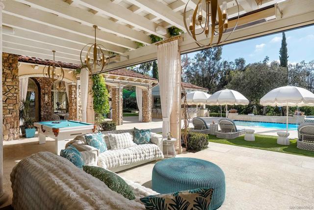 Introducing one of the most extraordinary estates in The Bridges of Rancho Santa Fe. Inspired by the ambiance of a private French Riviera resort, this refined south-facing estate is perched above the 16th fairway, capturing sweeping ocean and golf course views with over $5 million in bespoke upgrades. Fragrant citrus and mature olive trees frame the grounds, creating a serene Mediterranean setting designed for unforgettable sunset soirées and effortless resort-style living within the exclusive gates of The Bridges at Rancho Santa Fe. An attached guest suite with a private entrance provides exceptional comfort, privacy, and flexibility for visiting family, extended stays, or a secluded retreat for guests. At the heart of the home is a beautifully remodeled chef’s kitchen, thoughtfully designed for both culinary excellence and elegant entertaining. Expansive living areas transition seamlessly to the private oasis pool and spa, lush grounds, and elegant terraces, creating an inviting setting for leisurely afternoons and relaxed evenings. Located within the highly regarded Roger Rowe School District, the property offers families both luxury living and access to top-tier education. Residents of The Bridges enjoy an exceptional lifestyle with access to a championship golf course, private clubhouse dining, tennis courts, fitness facilities, and exclusive member amenities. An extraordinary residence where timeless elegance, privacy, and resort-inspired living come together to define the ultimate Rancho Santa Fe lifestyle.