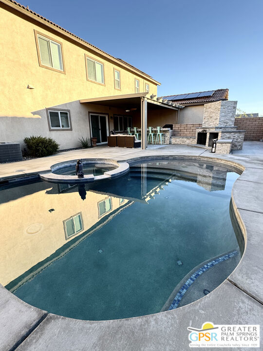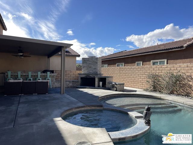 Discover this stunning 6-bedroom, 4-bathroom smart home offering 3,105 sq. ft. of beautifully designed living space. Nestled in a desirable community with gorgeous mountain views, this two-story residence features a spacious floor plan, solar power, and modern finishes throughout. The heart of the home opens to a custom pool/spa, outdoor fireplace, and built-in barbecue with a refrigerator perfect for entertaining. A private attached casita with its own entrance offers a separate bedroom, bathroom, and living room provides ideal guest accommodations. Additional highlights include a furnished interior, 2-car garage, and proximity to shopping, dining, and freeway access. Community amenities abound with pickleball courts, pool/spa, fitness gym, and park. This is truly a must-see home combining luxury, convenience, and resort-style living!