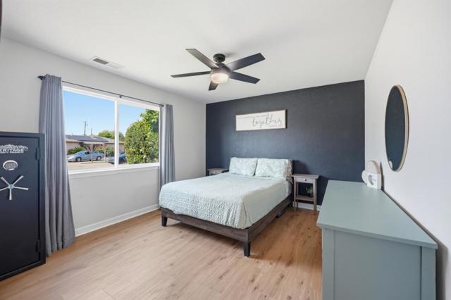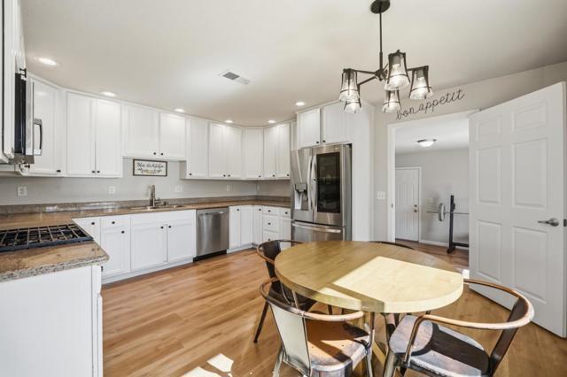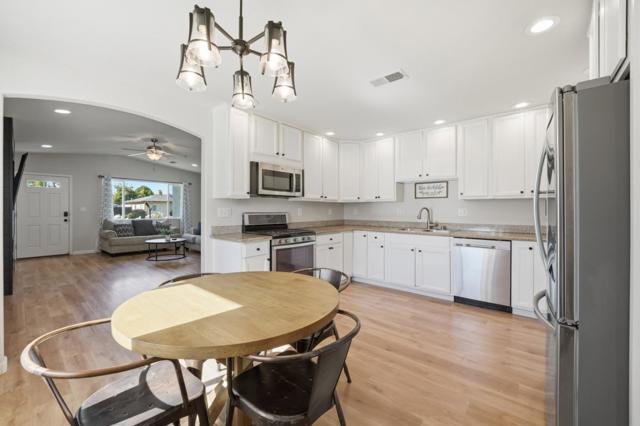 Welcome to 690 El Cerrito Way in Gilroy! This 3 bedroom, 1.5 bathroom home offers 1,420 sqft of living space on a 6,200 sqft lot with thoughtful updates throughout and no HOA. The light-filled kitchen features ample cabinetry, stainless steel appliances, and opens to a cozy dining area. The spacious living room showcases updated flooring and a modern fireplace feature wall, creating a warm and inviting atmosphere. Laminate flooring runs throughout the home. Both bathrooms have been tastefully updated, including a stylish full bath with a sleek vanity. A versatile bonus room provides the perfect space for a home gym, office, or additional living area. Bedrooms are well-sized, with unique accent walls adding character. Enjoy central A/C and solar for year-round comfort and efficiency. Step outside to a low-maintenance backyard with a pergola-covered patio, ideal for entertaining or relaxing evenings. Conveniently located near Alehouse Bar & Grill, Pineapple Village, and nearby grocery stores, with easy access to commuter routes, this home is a great blend of comfort, style, and functionality.