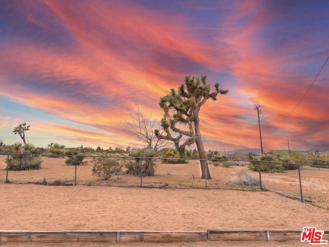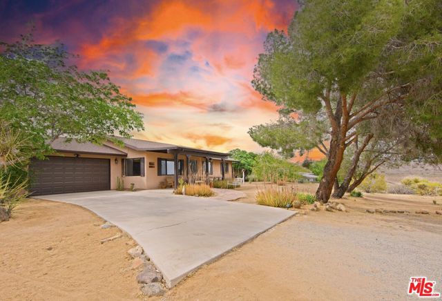 This rare 1985 ranch home in the heart of Joshua Tree offers a unique blend of heritage, space, and modern upgrades. Situated on a massive 1.25-acre flat, usable lot. Step inside to a thoughtfully updated 3-bedroom, 2-bathroom layout that balances its traditional ranch roots with clean, contemporary finishes. Recent interior enhancements include new luxury vinyl flooring throughout, which provides a seamless, durable, and stylish foundation for any decor. Freshly updated smooth ceilings, most walls, and new window treatments throughout the home create a bright, polished atmosphere. New, modern ceiling fans in the living room and bedrooms. This home offers a functional, accessible floor plan perfect for owners and guests alike. Step inside to a thoughtfully updated 3-bedroom, 2-bathroom layout that balances its traditional ranch roots with clean, contemporary finishes. Adventure-Ready, with extensive RV and Boat access, on a lot that easily accommodates multiple large-scale vehicles. The exterior grounds are as versatile as they are beautiful. Fully enclosed with fencing (while extending beyond the fence lines), the lot offers breathtaking vistas. Unobstructed desert and mountain views, and some of the most spectacular sunset skies in Southern California. Prime Location: Nestled on a quiet street just minutes from Joshua Tree National Park, downtown shopping, and the vibrant culture of Yucca Valley and Palm Springs. Unmatched Workspace & Storage! A property that is a dream for hobbyists, adventurers, or those needing extra square footage. Attached Parking in the convenient 2-car attached garage with direct access and a secondary detached garage/workshop, perfect for creative projects, a home gym, or additional secure storage. There is plenty of room to build an ADU or other separate living or work spaces. Whether you are an investor looking for a high-potential rental, a developer, or a buyer seeking a private desert sanctuary, this property is a rare find that combines classic desert charm with modern "move-in ready" essentials. Your life in the famed Joshua Tree is waiting for you!