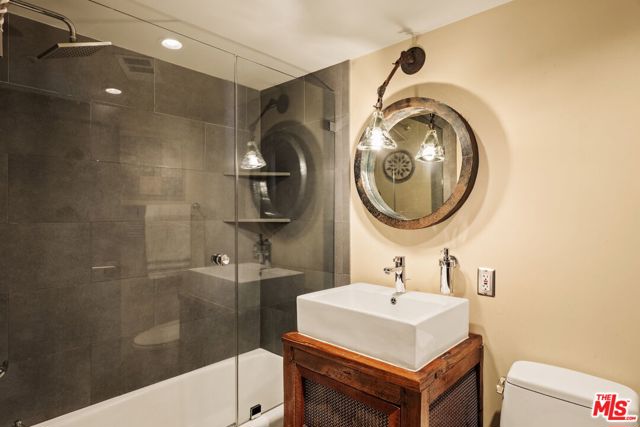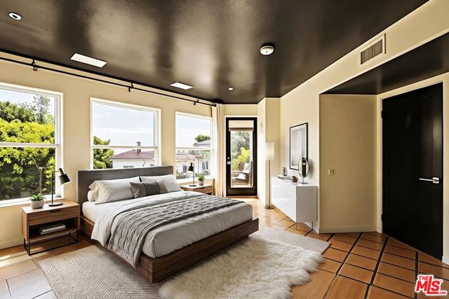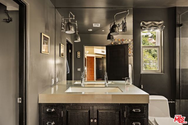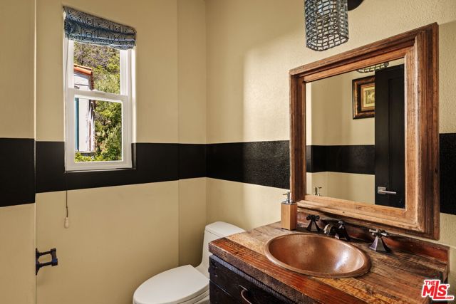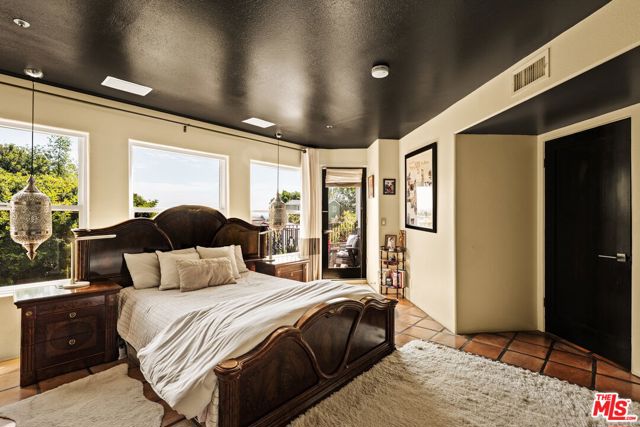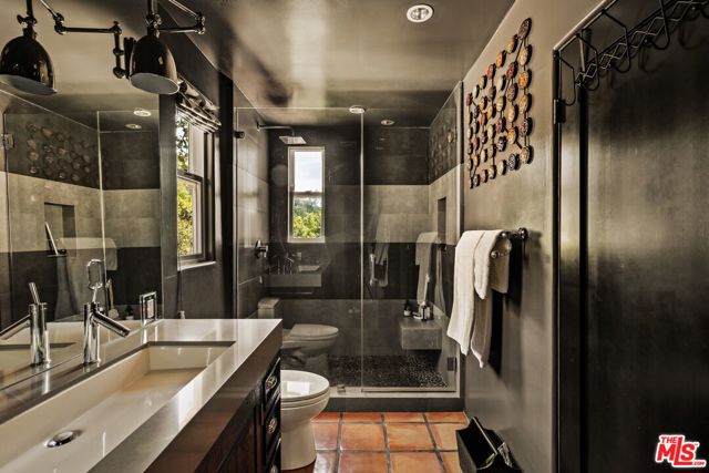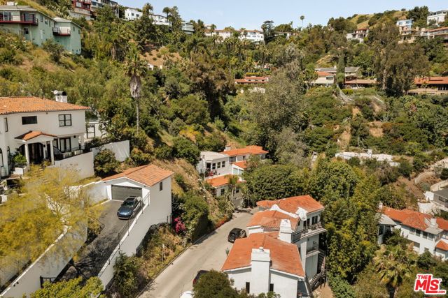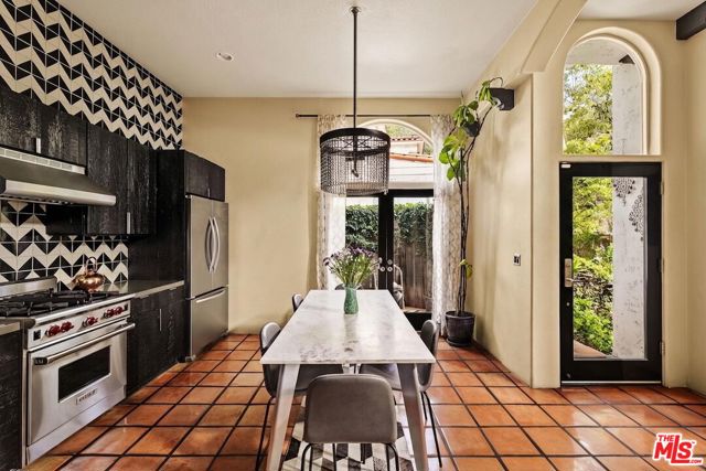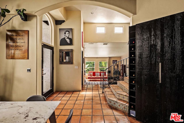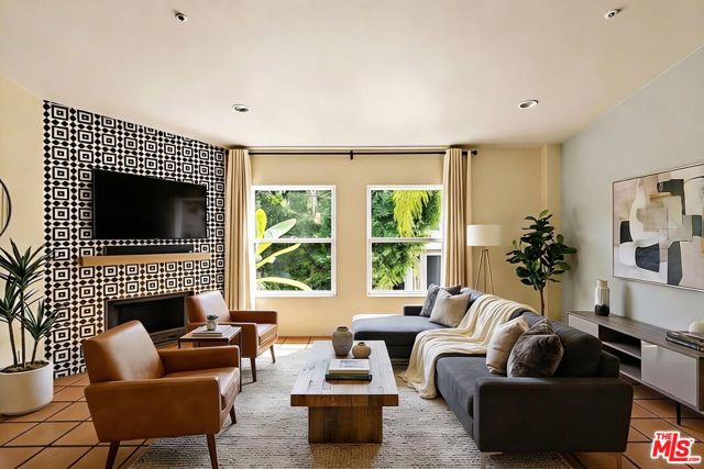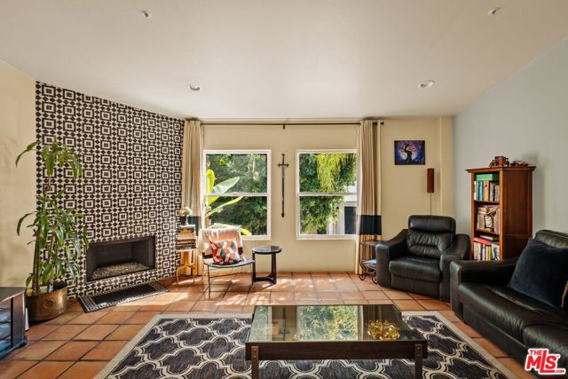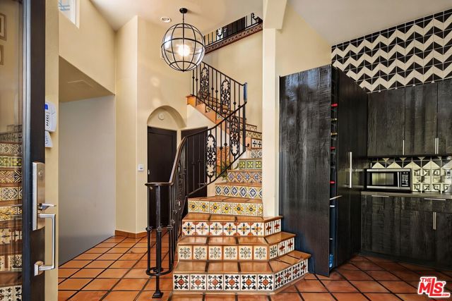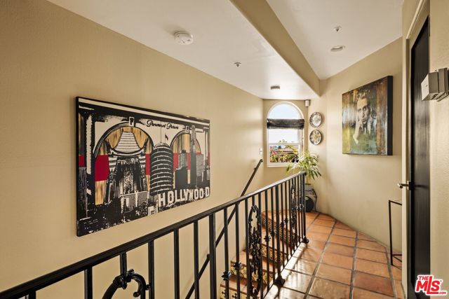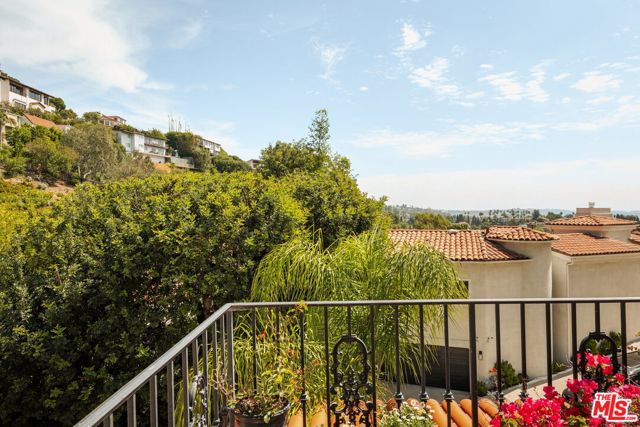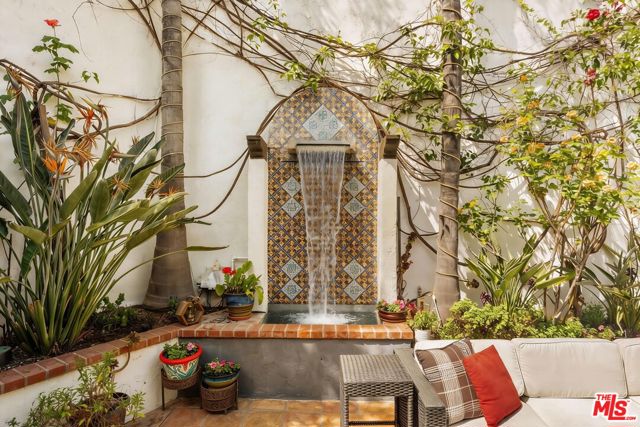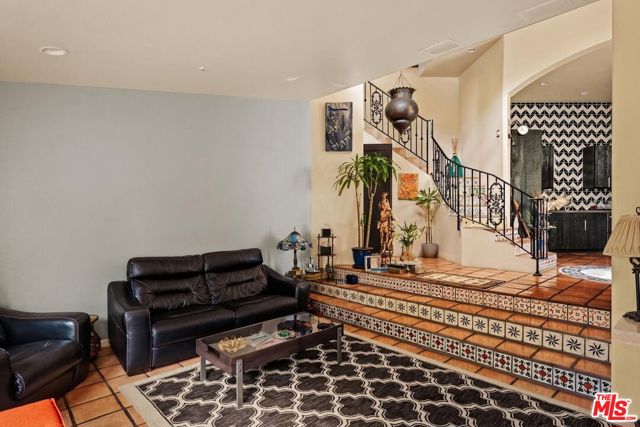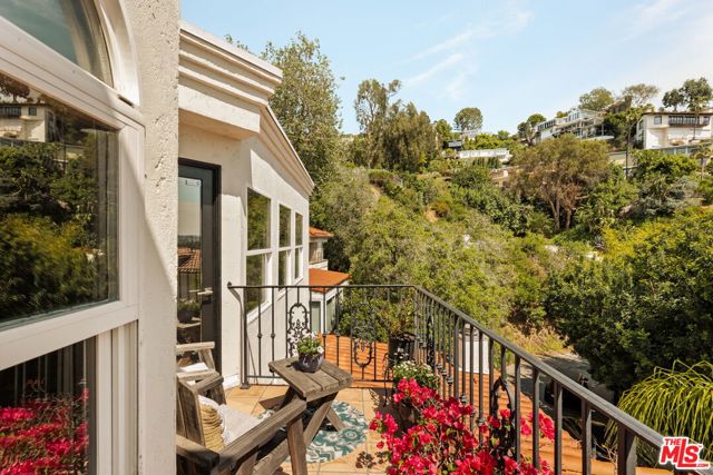 Chateau Marmont vibes, timeless hillside Hollywood glam, and seamless indoor-outdoor living. This Outpost Estates retreat offers an exceptional opportunity to own in one of the Hollywood Hills' most coveted enclaves at an attractive price, just under $2M. Inside, vaulted ceilings, Saltillo tile floors, and a striking Spanish tile staircase create a warm, design-forward aesthetic. The updated kitchen features reclaimed wood cabinetry, artisan tile, and premium appliances, including a Wolf range. Designed for the California lifestyle, the home features three distinct outdoor spaces: a serene patio off the kitchen, a private terrace off the primary suite, and an expansive upper-level entertaining deck complete with a water feature, bar area, and lounge space surrounded by lush greenery and city views. The primary suite captures sweeping vistas across the hills, while thoughtfully updated bathrooms showcase natural stone and curated finishes. With easy access to the 101, major studios, the Hollywood Bowl, Runyon Canyon, and the Sunset Strip, this location offers the perfect balance of tranquility and convenience.