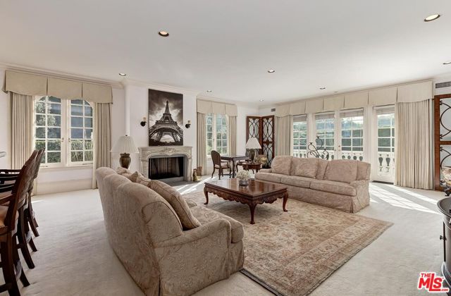 Grandeur personified in this walled and gated 3-level Contemporary Mediterranean manse available for sale for the first time in 28 years and featuring voluminous sunlit rooms with super high ceilings, wood and stone floors, mouldings, and French doors. A sweeping gated driveway evokes the feeling that you are approaching a fine European estate. A dramatic skylit 2sty entry foyer with a spectacular staircase leads you towards the perfect floor plan for entertaining highlighted by a stunning paneled library/office, fantastic living and family rooms, gracious formal dining room, and a massive family-style kitchen. The living room, family room, and kitchen all flow directly to the lush rear grounds with endless lawns, patios, terrace, BBQ center, pool/spa, and mature privacy hedging. The library/office and dining room open to an elegant front terrace for further entertaining potential. 4 impressively sized bedroom suites are upstairs including the huge primary suite with big sitting room, fireplace, peek-a-boo view balcony, dual baths and closets. The well-planned lower level of the home features a large media room opening to the rear grounds via a proper stairwell, two guest bedrooms, powder room, sizable laundry room, and a direct-entry garage of over 2,000 sq ft (perfect for motor enthusiasts). Sited in the center of the Flats of Beverly Hills on a wide and substantial corner lot, 701 N. Beverly Drive awaits your most sophisticated (and highly pre-qualified) buyers.