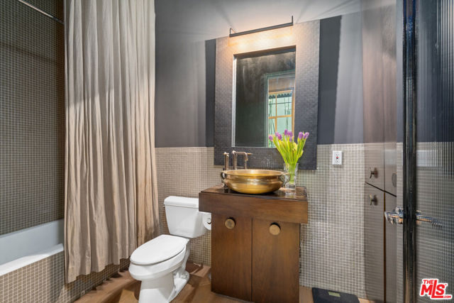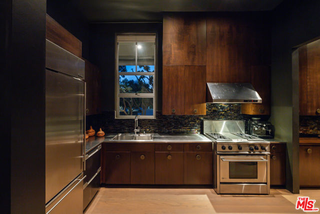 The Lofts at Melrose Place. Discretely located off of West Hollywood's most iconic street, this previously published designer-owned residence places you moments from world-renowned Melrose Place boutiques, cafes, shopping, acclaimed dining and the recognizable Sunday Farmers Market. The setting is a walker's paradise. Located in a prestigious private-ownership building, the property is known for its discretion, strong management and notably low HOA dues. Loft 101 is considered one of the building's most desirable units. Soaring 11.5-foot ceilings create dramatic volume, balanced by a layout that feels both open and refined. It is an entertainer's dream. The interiors have been professionally curated, featuring custom cabinetry, hand-made glass tilework and elegant travertine finishes in the primary bath. Newly refinished white oak floors bring warmth and architectural continuity. Two en-suite bedrooms anchor the floor plan, one styled as a sophisticated home office, while a reimagined service area introduces a pantry, bar and separate laundry room. The spacious primary suite is a perfect sexy retreat. Beyond the interiors, a private terrace overlooks a beautifully landscaped garden. Abundant garage storage and two side-by-side parking spaces complete this polished West Hollywood offering.