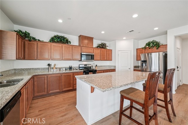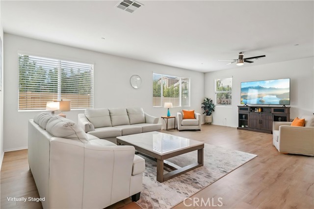 Located in the Cantera community of Jurupa Valley, this 4-bedroom, 3.5-bath home offers 2,959 sqft of living space on an 8,276 sqft lot. Set in a well-kept neighborhood known for pride of ownership, with convenient access to the 60 freeway, Oak Quarry Golf Club, shopping, and dining.The layout is open and functional, with natural light throughout and a seamless flow between the living, dining, and kitchen areas—making it easy to entertain or enjoy everyday living. The kitchen features a large center island, granite countertops, ample cabinetry, and a pantry. A main floor bedroom and full bathroom, along with a half bath, offer flexibility for guests or multi-generational living. Upstairs includes a spacious loft—ideal as a second living area, home office, or game room. The primary suite offers a private retreat with soaking tub, separate shower, and walk-in closet. Two additional bedrooms, a full bath, and laundry room complete the second floor. Step outside to a backyard with covered patio—perfect for relaxing evenings or weekend gatherings. The attached 2-car garage with extended tandem space adds flexibility for a third vehicle, storage, or additional use. Enjoy nearby park access and local hiking trails, adding to the overall lifestyle this home offers. No HOA. Located within the Jurupa Unified School District.