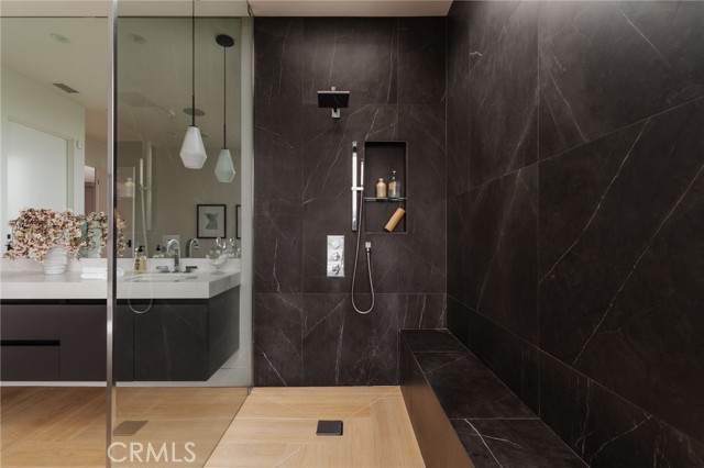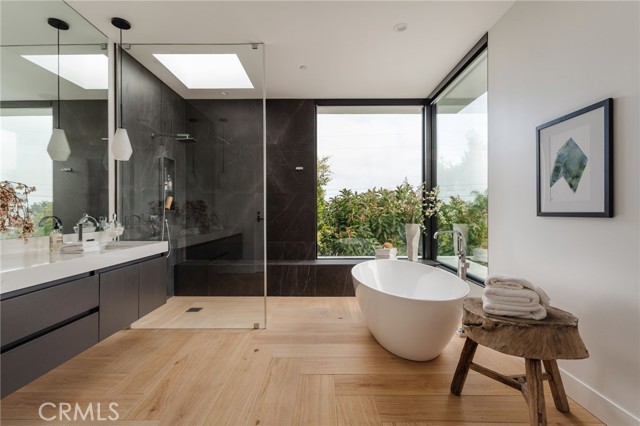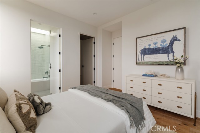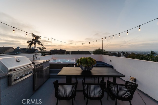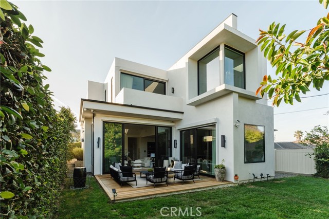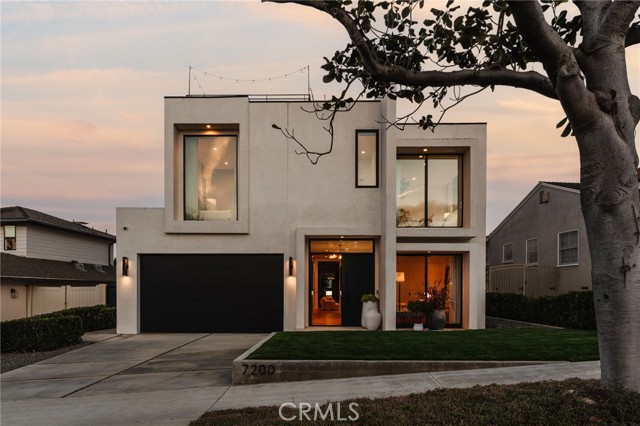 7200 Kentwood is a crowned jewel positioned in the coveted 'North of 77th' pocket of Westchester. This 2019 contemporary masterpiece sits at the peak of the Westchester market – one of LA's most sought-after family neighborhoods – offering 5 bedrooms, 4.5 baths, and the ultimate indoor/outdoor living. Picture mornings where automated floor-to-ceiling drapes part to unveil 12-foot Western sliding doors opening to a redwood deck and lush backyard oasis, and evenings taking in jaw-dropping panoramic city views from the rooftop deck — complete with hot tub, BBQ, lounging, lighting, and a dumbwaiter. The gourmet kitchen features an 11-ft. waterfall island, custom cabinetry, and wet-bar with wine fridge, alongside a lavish dining room. The luxurious primary suite offers a fireplace, private balcony, and spa-like bath. A flex entryway bedroom with ensuite is perfect for a home office or guests. Skylights flood the home with natural light, while thoughtful details — laundry chute, multi-zone speakers, ample storage, solar panels, whole-house water softener system, impact-resistant anti-intrusion windows, automated security shutters, and camera hook-ups — perfectly balance intimate family living with an entertainer's dream. Served by Kentwood Elementary, Wright Middle School STEAM Magnet, and Westchester Enriched Sciences Magnets High School.