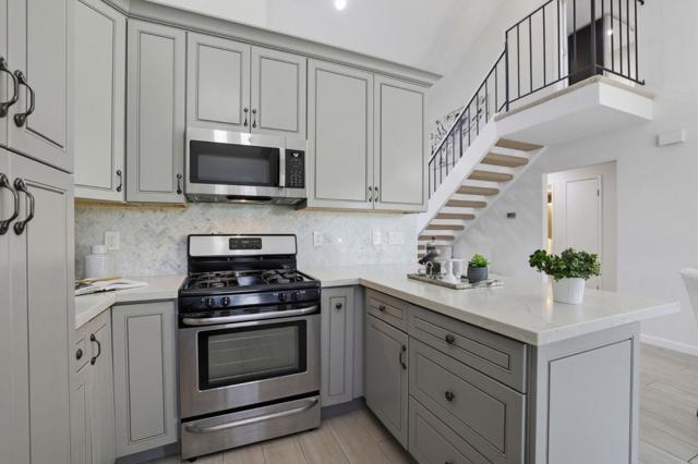 Welcome to this bright and clean home nestled in a desirable pocket of Almaden, located within the highly regarded SJ Unified School District with top-rated nearby schools. A charming tile walkway and pebble stone accented planters lead to the front door beneath a classic tile roof. Inside, vaulted ceilings create an airy feel, while fresh interior paint, recessed lighting, tile flooring throughout the main level, and a cozy fireplace add warmth and style. The kitchen features custom cabinetry, stainless steel appliances, quartz countertops, and bar seating, thoughtfully designed for everyday living. The 3-bed, 2-bath layout offers flexibility, including an upstairs primary suite with walk-in closet and ensuite bath, a downstairs bedroom with its own ensuite and hall access, and an additional guest bed or home office. The peaceful backyard showcases stone pavers and raised planter beds with lush yet low-maintenance greenery, creating a private space to relax and unwind. The 1-car attached garage has epoxy flooring, washer and dryer, interior access through the kitchen, and access to the backyard. Set within a quiet, friendly Almaden neighborhood known for scenic trails and beautiful natural surroundings, this home offers comfort, convenience, and a relaxed lifestyle.